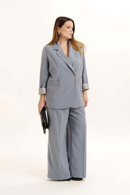 Костюм брючный 2438 Deesses — идеальное решение для стильных и уверенных в себе женщин. Этот женский костюм состоит из жакета и брюк, выполненных из костюмной ткани с полосатым рисунком. Коллекция бренда Deesses предлагает классический офисный стиль с современными элементами. Жакет прямого силуэта, украшенный воротником пиджачного типа и застежкой на пуговицы, изготовлен с использованием вискозы, что обеспечивает комфорт и дышащие свойства. Особые дизайнерские детали включают накладные карманы и отделочные элементы в стиле Шанель. Брюки с прямым кроем и удобными карманами идеально подойдут для деловых встреч. Серый цвет делает этот костюм универсальным вариантом для осенне-весеннего сезона. Отделочная фурнитура может меняться.