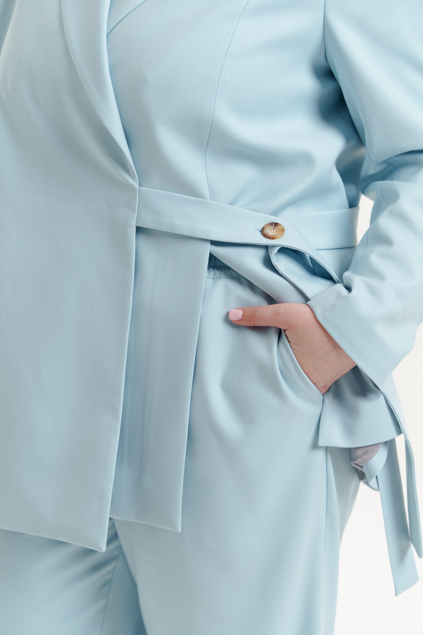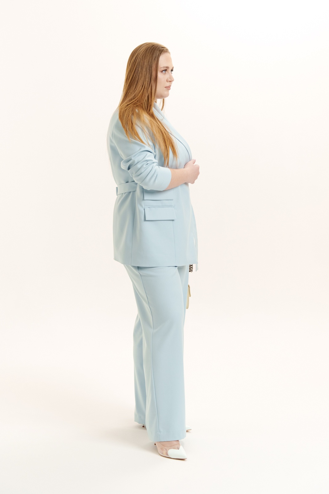Костюм брючный 2439 Deesses от коллекции бренда Deesses предлагает идеальное сочетание стиля и комфорта. Этот брючный костюм выполнен из премиум костюмной ткани, содержащей полиэстер, вискозу и спандекс, что обеспечивает приятную текстуру и легкость в уходе. Жакет имеет классический прямой фасон с пиджачным воротником и прорезным карманом с клапаном, придавая образу деловую строгость. Брюки идут с отрезным поясом на резинке, что гарантирует удобство и свободу движения. Светло-голубой цвет костюма освежает образ и подходит для офисного или нарядного стиля. Этот костюм идеально подойдет для деловых встреч и повседневного использования в холодные сезоны. Отделочная фурнитура может меняться.