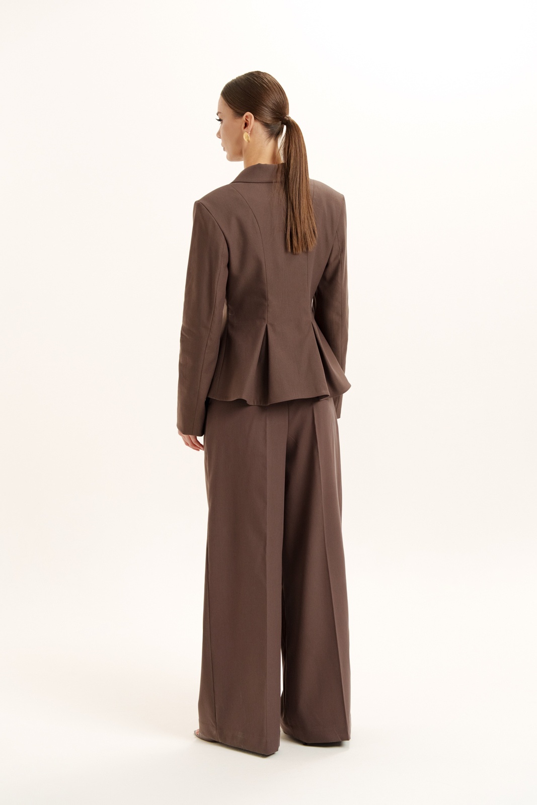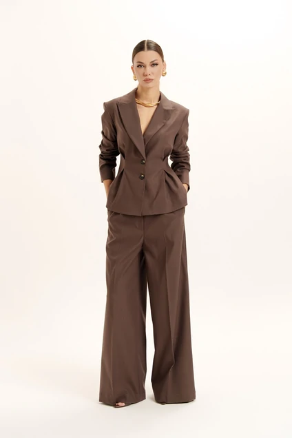 Костюм брючный 2443 Deesses – идеальный выбор для деловых женщин. Коллекция бренда Deesses сочетает в себе стиль и функциональность. Жакет приталенного силуэта с мягкими складками на талии и двубортной застежкой придает образу элегантность. Брюки палаццо со стрелками создают изысканный вид. Костюм выполнен из хлопка и полиамида, что обеспечивает комфорт и долговечность. Цвет костюма коричневый, что делает его универсальным для офисного стиля. Карманы с отрезными бочками и шлевки для ремня добавляют практичности. Легкая подкладка из вискозы и полиэстера делает его подходящим для осенне-зимнего сезона.