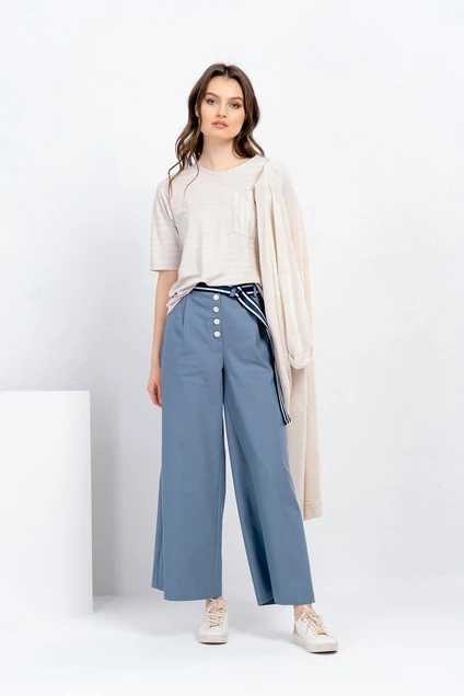 Блуза:    вискоза-55%, хлопок-35%, ПЭ-10%,Брюки: хлопок-72%, ПЭ-26%, спандекс-2%.