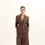 Комплект женский трехпредметный. Жакет прямой на подкладке с потайной застежкой на петли и пуговицы. Воротник пиджачного типа, рукав отрезной на базе цельнокроеного, по низу с разрезом. По переду декоративная молния, накладные карманы. Сзади высокая шлица. Длина по спинке - 72 см, длина рукава от горловины - 66 см. Брюки классические, в боковых швах карманы с отрезным бочком. Застежка на молнию и петлю с пуговицей. Пояс отрезной с вставкой эластичной тесьмы. Длина с учетом пояса - 98 см. Блуза трикотажная с коротким рукавом свободного покроя. Вырез горловины неглубокий округлой формы, сзади застежка на петлю и пуговицу. Спереди накладной декоративный накладной карман. Длина по спинке - 70 см, длина рукава от горловины - 47 см. Блуза: Вискоза-65%, нейлон-30%, спандекс-5%