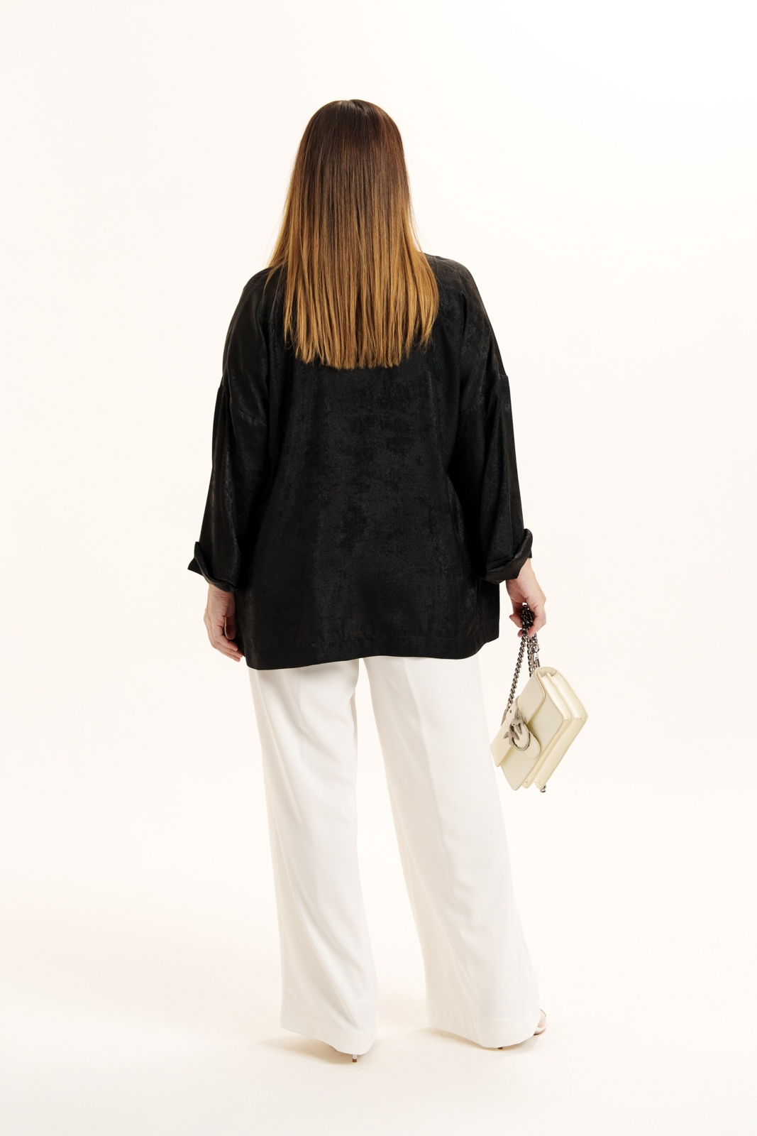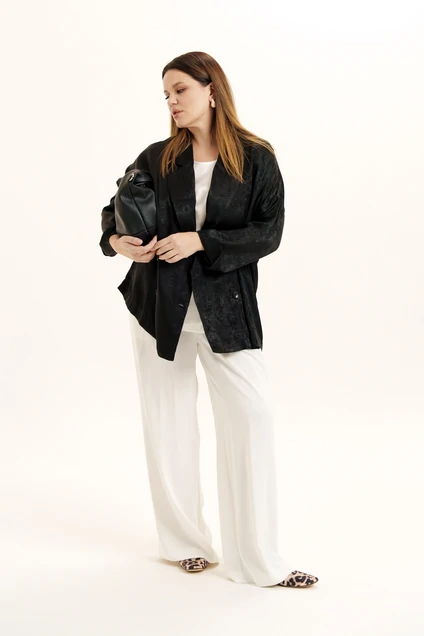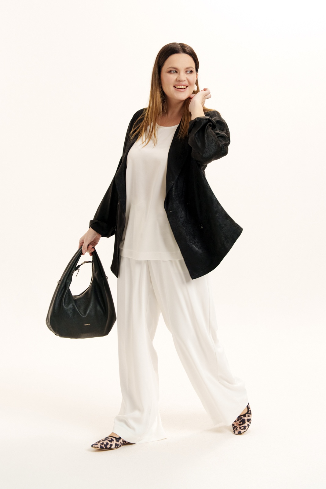 Костюм брючный 3147-5 Deesses привнесёт в ваш гардероб элегантный стиль и функциональность одновременно. Коллекция бренда Deesses представляет собой изысканный трёхпредметный комплект для современной женщины. Жакет прямого силуэта с двубортной застёжкой выполнен из лёгкой ткани и дополнен съёмным украшением, что добавляет изысканный акцент. Прямые брюки с карманами и эластичной талией обеспечивают комфорт и практичность. Для лёгкости в носке, блуза выполнена из атласной ткани и оснащена цельнокроеным коротким рукавом. Костюм имеет классический чёрный цвет, который идеально подходит для осеннего и зимнего сезонов, что делает его универсальным решением для офисных будней и деловых встреч.