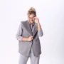 Комплект брючный(кофта +брюки+жилетка).Кофта прямого силуэта со спущенным плечом , рукав втачной одношовный с притачным манжетом, по низу изделия притачной пояс. Горловина обработана бейкой. По плечевому шву и рукаву лампас из отделочной ткани. Брюки прямые,верхний срез обработан поясом с резинкой и шнуром. По боковым швам лампас из отделочной ткани. Жилетка полуприлегающего силуэта с центральной застёжкой на тесьму-молнию,двусторонняя обработаны прорезные карманы с листочкой и накладные карманы с другой стороны. Используется две ткани. В качестве отделки используется отделочная строчка ,фурнитура,вышивка.