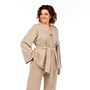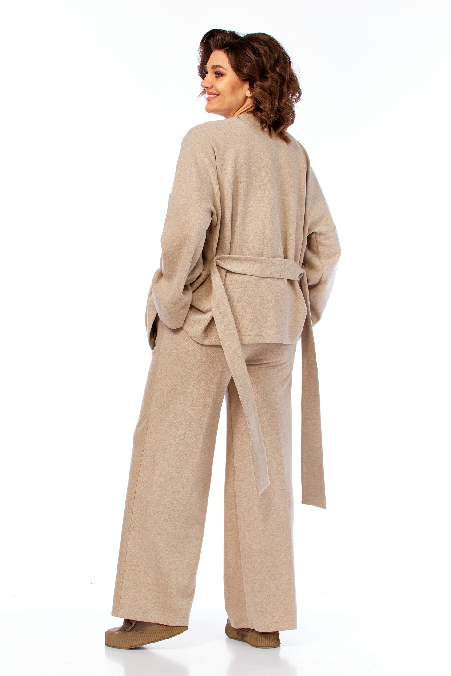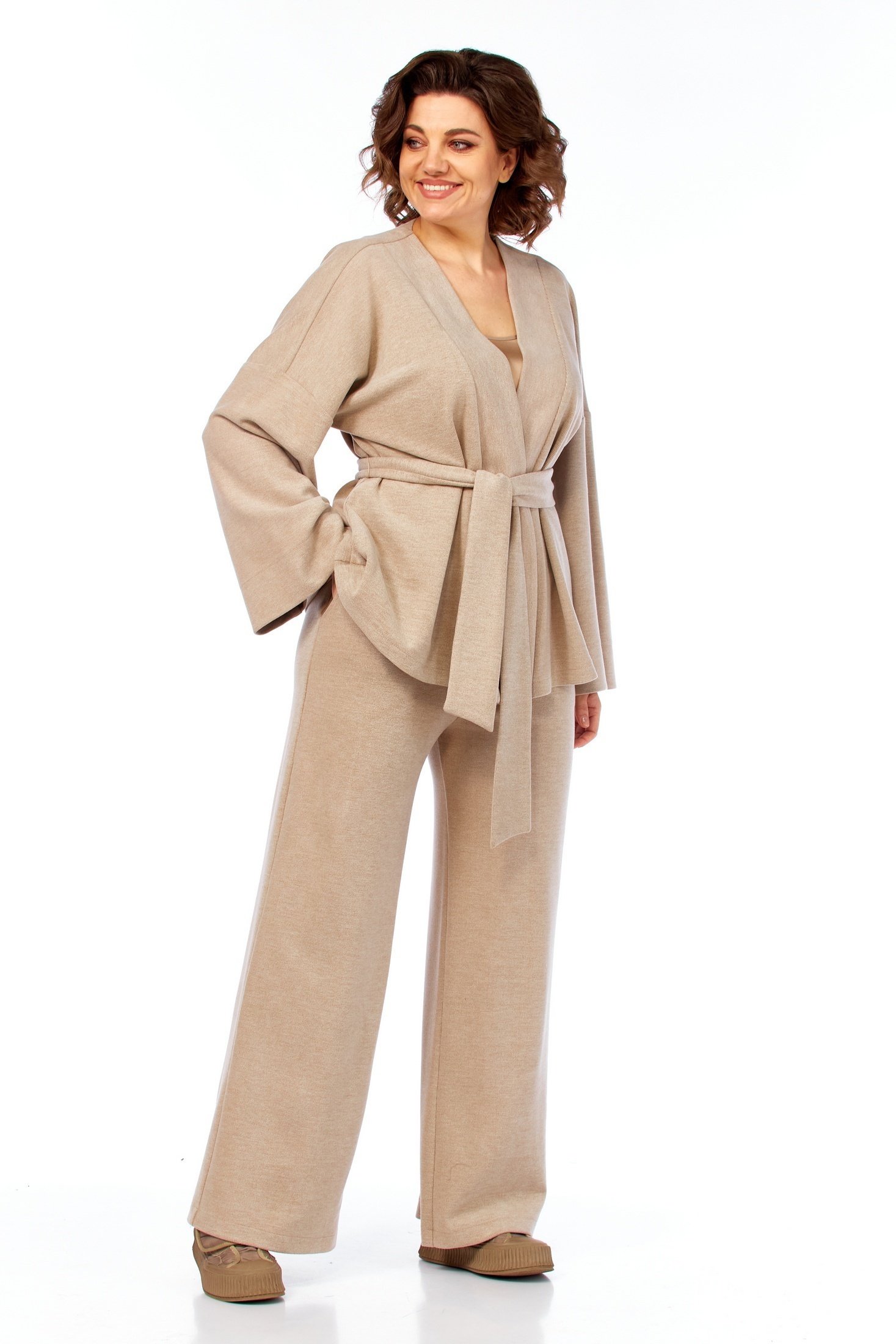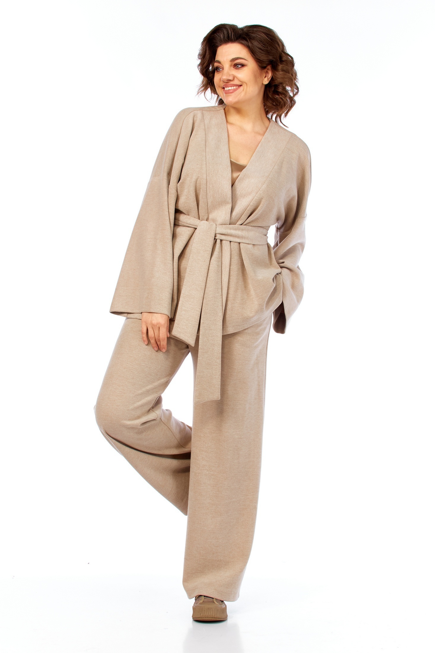 Костюм брючный 2143 Diamant от бренда. Коллекция бренда Diamant предлагает стильный комплект, состоящий из брюк, топа и кардигана-кимоно. Брюки выполнены из вискозы и полиэстера, что обеспечивает комфорт и удобство в носке. Они имеют прямой, широкий крой с боковыми карманами и эластичным поясом. Топ с регулируемыми бретелями и вытачками по переду из отделочной ткани добавляет изящества. Кардиган-кимоно, завязывающийся съемным поясом и достигающий линии бедра, можно использовать как дополнительный акцент образа. Бежевый цвет костюма идеально подойдет для повседневного и офисного стилей, а также для летних мероприятий. Легкость материала делает его отличным вариантом для теплого сезона.