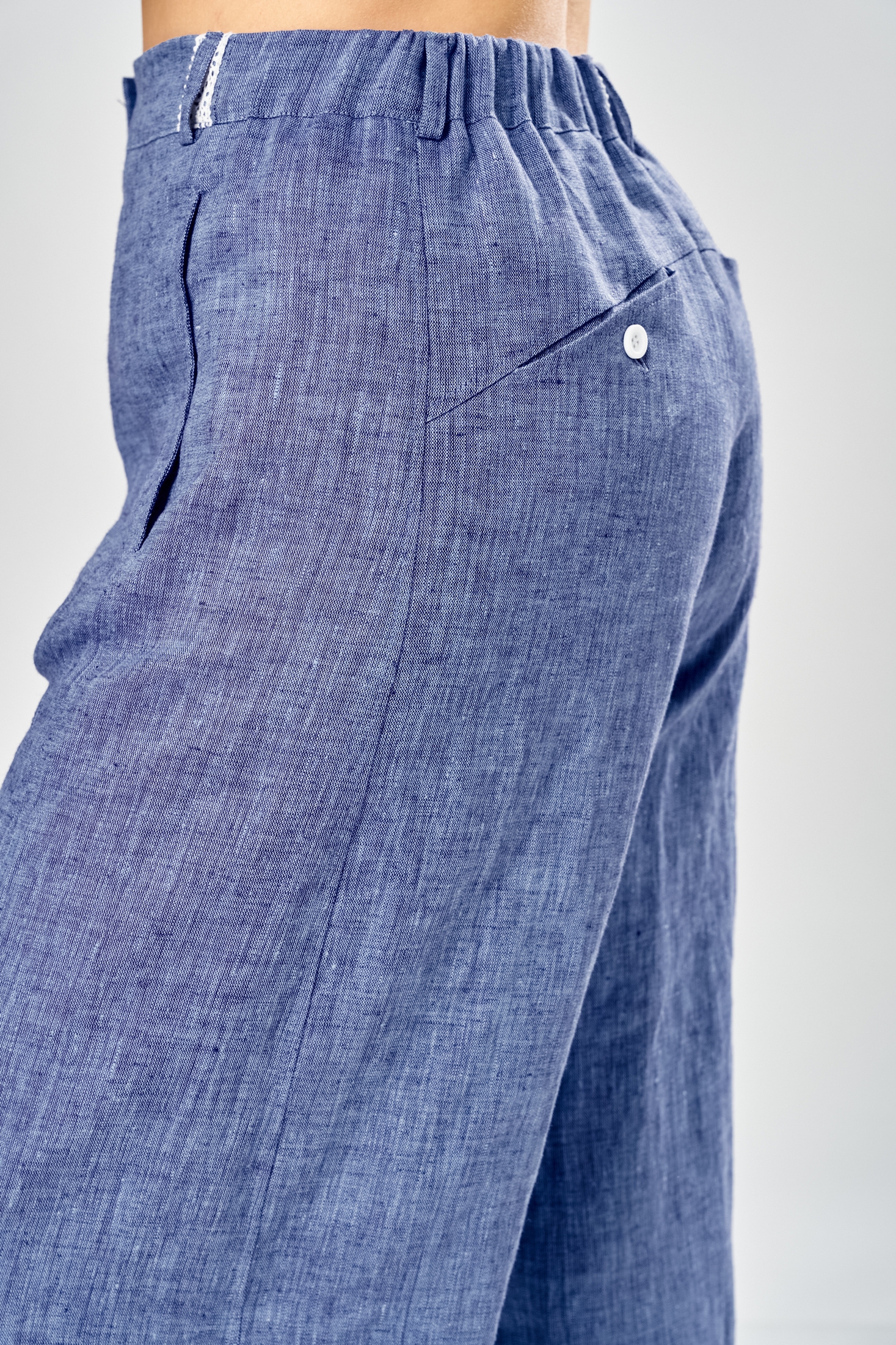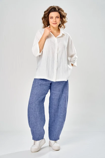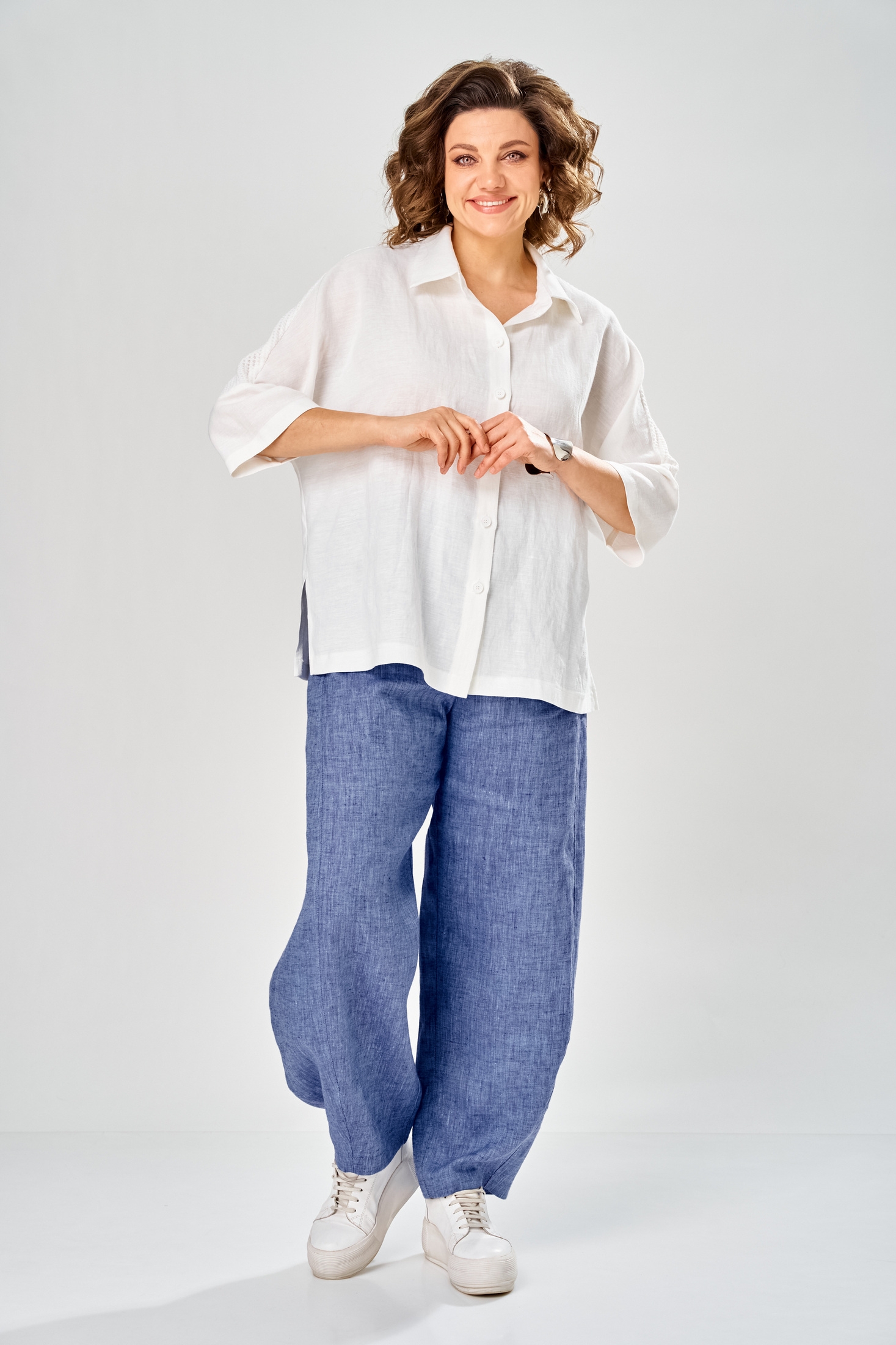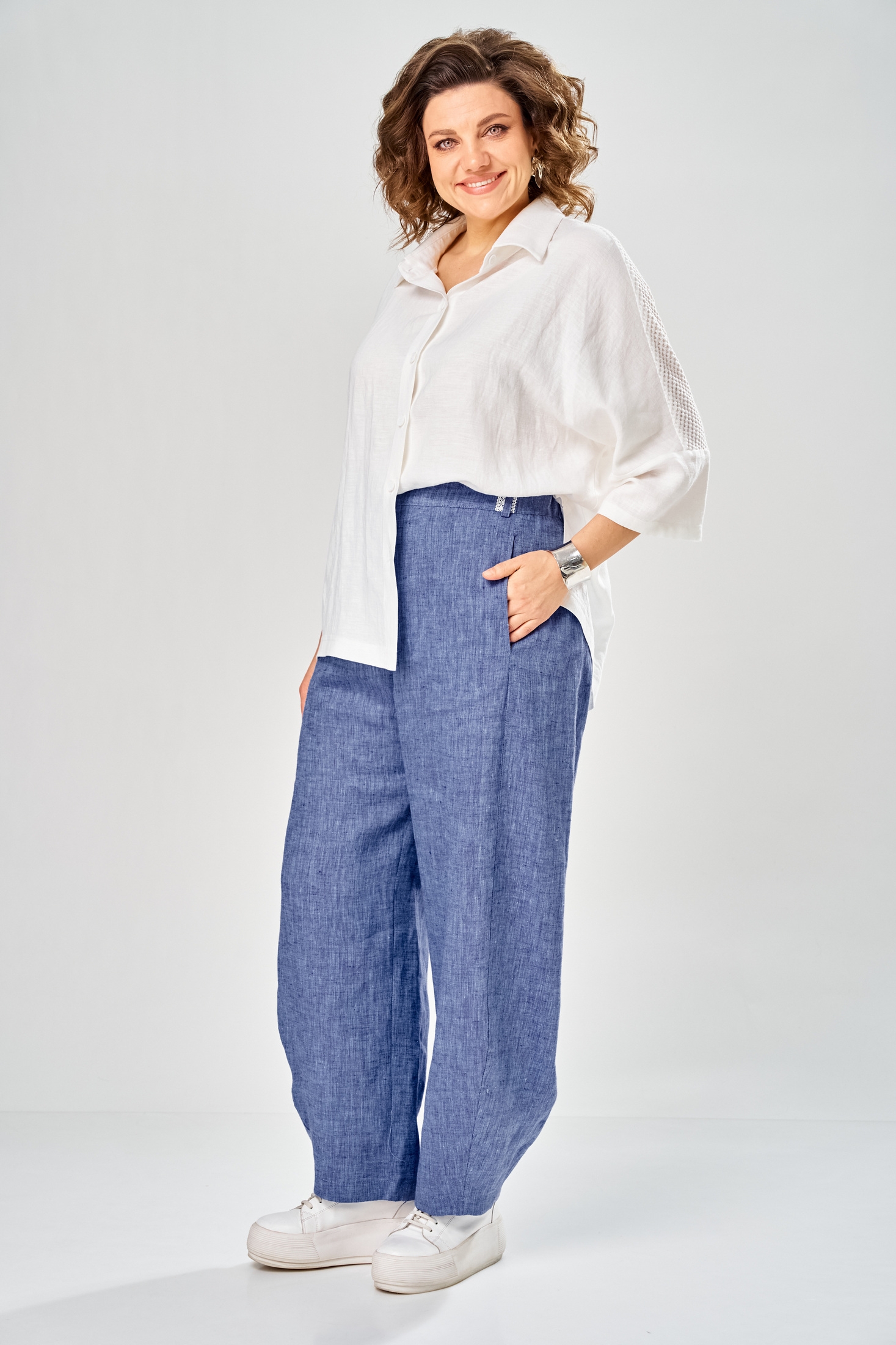 Костюм брючный 2157 синий Diamant — идеальный выбор для стильного повседневного образа. Коллекция бренда Diamant представляет комплект, состоящий из рубашки и брюк, выполненных из натурального льна и вискозы, что обеспечивает легкость и комфорт в ношении. Рубашка декорирована спущенными плечами и застежкой на пуговицы, придающей акцент на стиль и практичность. Короткие одношовные рукава и стояче-отложной воротник дополнены декоративной отделочной строчкой. Брюки с расширенными к низу штанинами и эластичным поясом обеспечивают свободу движений. Карманы на молнии добавляют функциональности. Длина по спинке составляет 74 см, длина брюк — 107 см, что идеально подходит для весенне-летнего сезона. Синий цвет костюма добавляет яркость и свежесть в ваш гардероб.