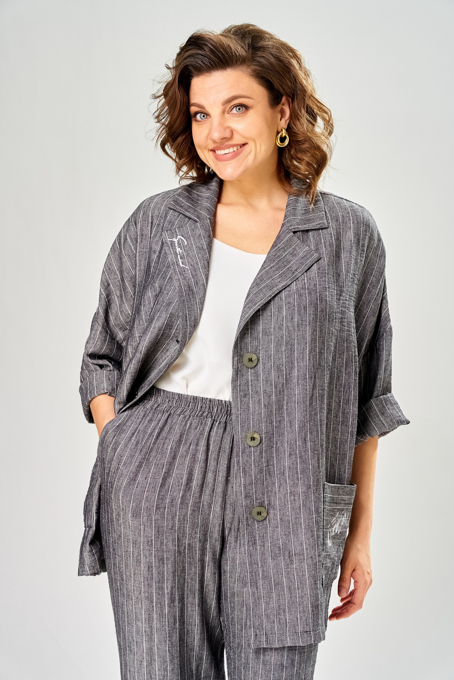 - Брючные костюмы больших размеров в полоску