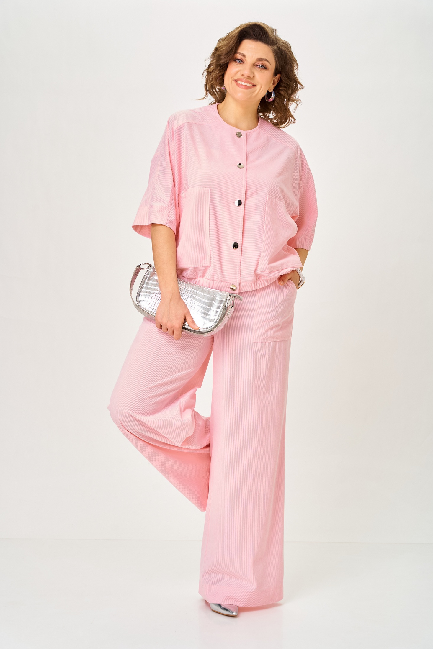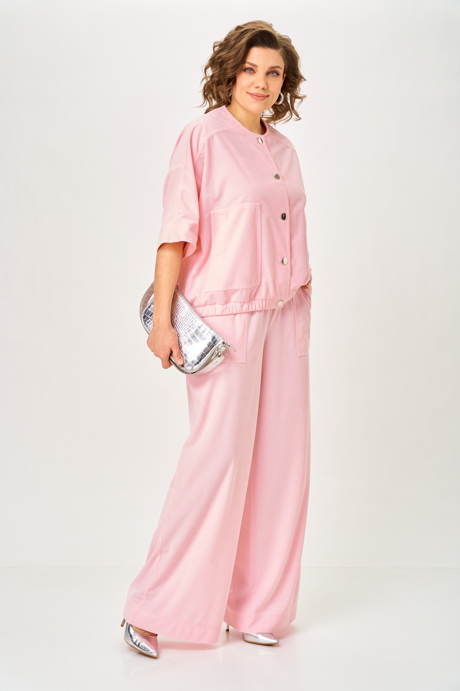 Костюм брючный 26238 пудра DOGGI сочетает в себе легкость и стиль, делая его идеальным выбором для летних дней. Коллекция бренда DOGGI представляет костюм из легкого вельвета, который обеспечивает комфорт и вентиляцию. Жакет свободного кроя с накладными карманами и укороченными резными рукавами подчеркивает вашу индивидуальность и создает повседневный стиль. Брюки прямого силуэта с поясом на резинке и средней посадкой дополняют образ. Нежная пудровая расцветка добавляет женственность, а возможность замены фурнитуры позволяет адаптировать изделие под ваши предпочтения. Этот костюм станет отличным выбором как для повседневных выходов, так и для особых мероприятий.