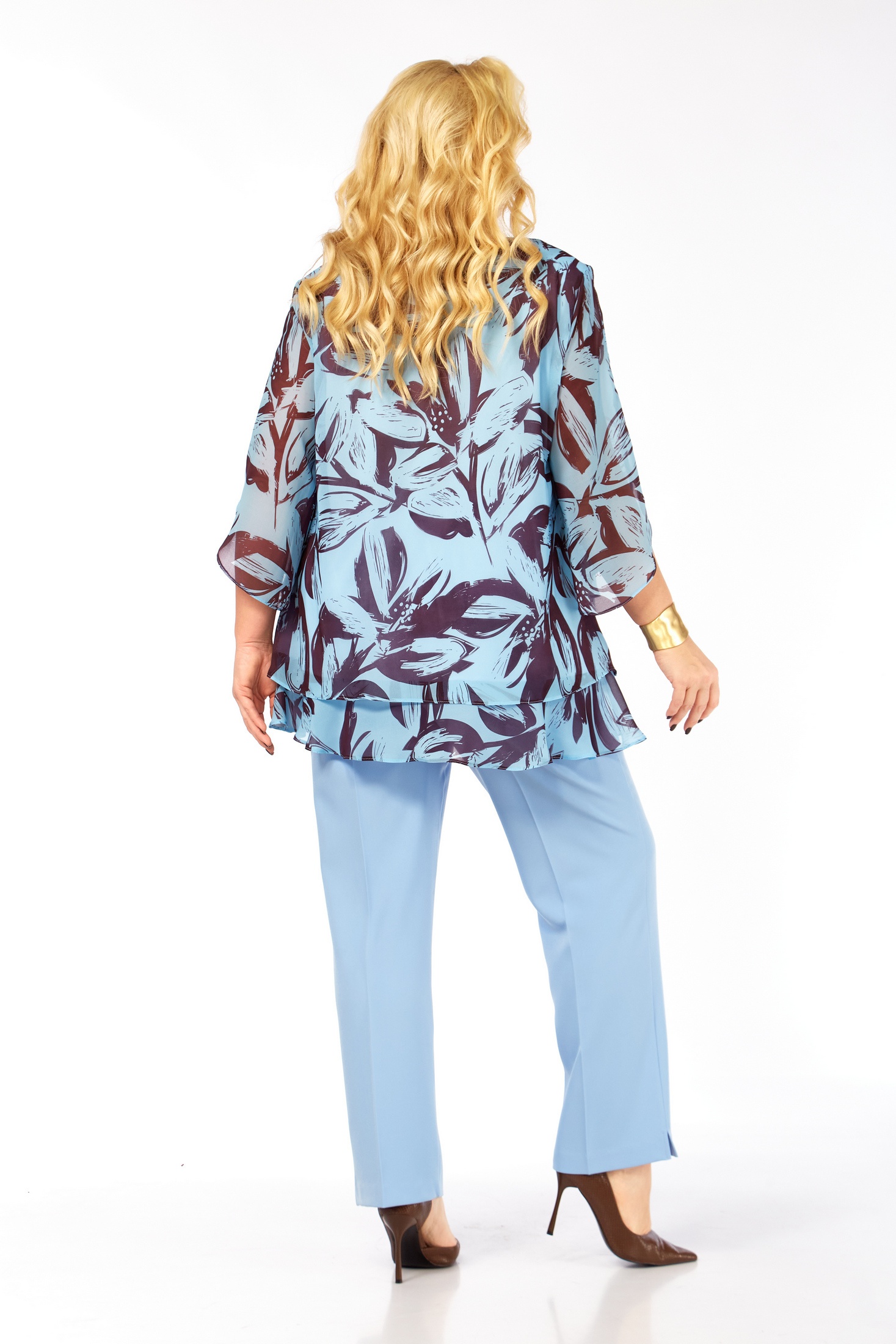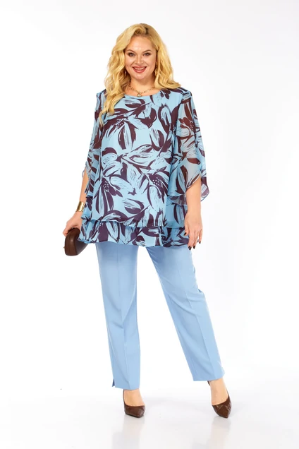 Костюм брючный 2213-12 Элль-стиль от коллекции бренда Элль-стиль предлагает идеальное решение для летнего периода. Комплект состоит из блузы и брюк, выполненных из легкого и воздушного шифона с уникальным принтом. Свободный крой блузы с нагрудными вытачками и округлой горловиной обеспечивает комфорт и стиль. Втачной рукав добавляет элегантность, в то время как брюки слегка заужены к низу и оснащены притачным поясом с частичной резинкой для удобной посадки. Гармоничное сочетание светло-синего и цветного принта делает этот костюм универсальным для повседневного использования, отлично подходящим для прогулок в теплую погоду.