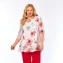 Блузка прямого силуэта из креп-шифона. На полочке нагрудные вытачки, по центру полочки декоративный элемент. Горловина обработана притачной планкой. Спинка со средним швом. Застежка сзади в среднем шве на 1 навесную петлю, 1 пуговицу. Рукав втачной. Низ рукава присборен, обработан манжетой. В боковых швах разрезы.