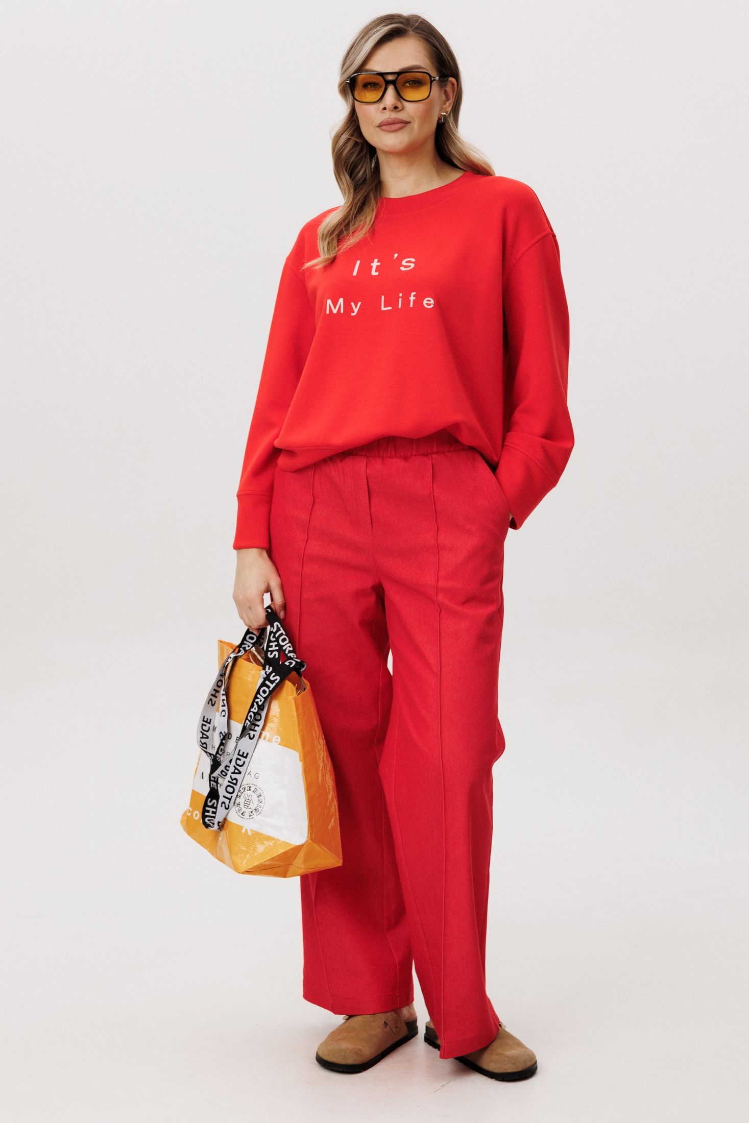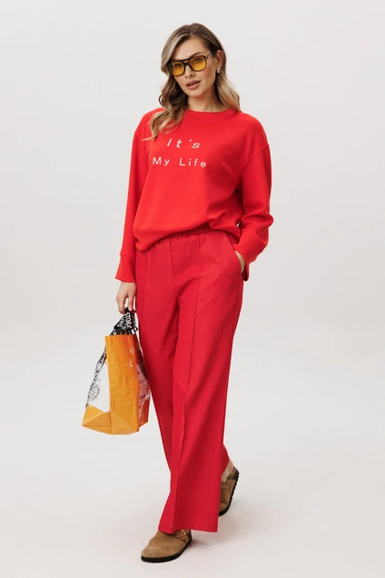 Костюм брючный 5070 FantaziaMod — яркое и стильное решение для вашего гардероба. Коллекция бренда FantaziaMod представляет универсальный комплект, включающий свитшот и брюки. Верх выполнен из полиэстера и вискозы, обеспечивающих комфорт и современный вид, дополнен авторским принтом. Брюки на эластичном поясе с боковыми карманами, подходят для повседневного и спортивного стиля. Комплект в насыщенном красном цвете подходит для весеннего и осеннего сезонов, идеален для прогулок и встреч с друзьями. Свободный пошив позволяет чувствовать себя уверенно и расслабленно.