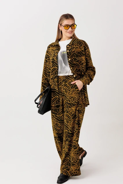 Костюм брючный 5077 темный хаки FantaziaMod — идеальный выбор для ценителей стиля и комфорта. Коллекция бренда FantaziaMod предлагает вам костюм с оригинальным геометрическим рисунком, который выделяется на фоне других. Материал, состоящий из полиэстера, вискозы и спандекса, обеспечивает комфорт и легкость в носке. Свободный фасон оверсайз с широкими брюками-палаццо подходит для офисных будней и неформальных встреч. Nакладные карманы и эластичный пояс добавляют практичности. Этот костюм, выполненный в темном хаки цвете, станет отличным решением для межсезонья и осени. Универсальный наряд для создания стильных образов на каждый день.