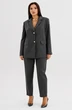 Жакет свободного расширенного силуэта, втачного покроя с центральной застёжкой и классическим английским воротником. Полочка с отрезным бочком, нагрудной вытачкой и прорезным карманом с клапаном. Спинка с центральным швом, шлицей и отрезным бочком. Рукав двухшовный с отлетной шлицей.