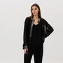 Свободный, упрямлённый свитшот с заниженной линией плеча, воротником-стойкой, частичной застёжкой на тесьму-молнию, прорезными карманами, рукавом, состоящим из 3-х частей с притачной манжетой и кулисой с регулирующей эластичной тесьмой и фиксаторами по низу изделия.