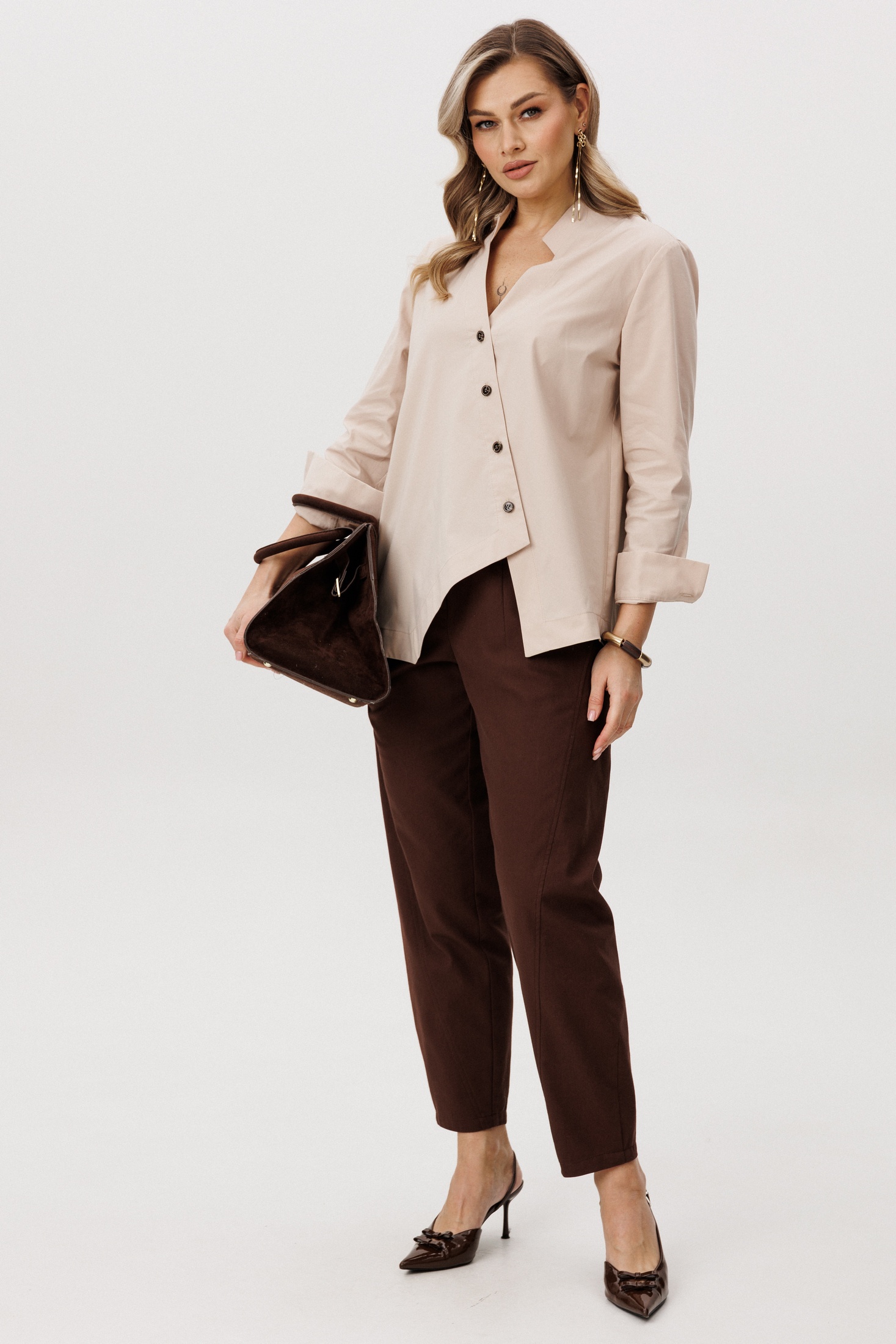 Костюм брючный 5331 бежевый+коричневый FantaziaMod подарит вам комфорт и стиль в теплый сезон. Коллекция бренда FantaziaMod предлагает гармонию утонченного стиля и удобства, с рубашкой из хлопка и брюками из смеси хлопка и полиэстера. Рубашка с асимметричной линией низа и аккуратным воротником создает современный образ, а однотонные брюки с мягкой посадкой обеспечивают свободу движений. Костюм легко комбинируется с различной обувью, и идеально подходит для расслабленных или собранных образов. Бежево-коричневый цвет в сочетании с натуральными тканями делает костюм универсальным выбором для повседневного использования.