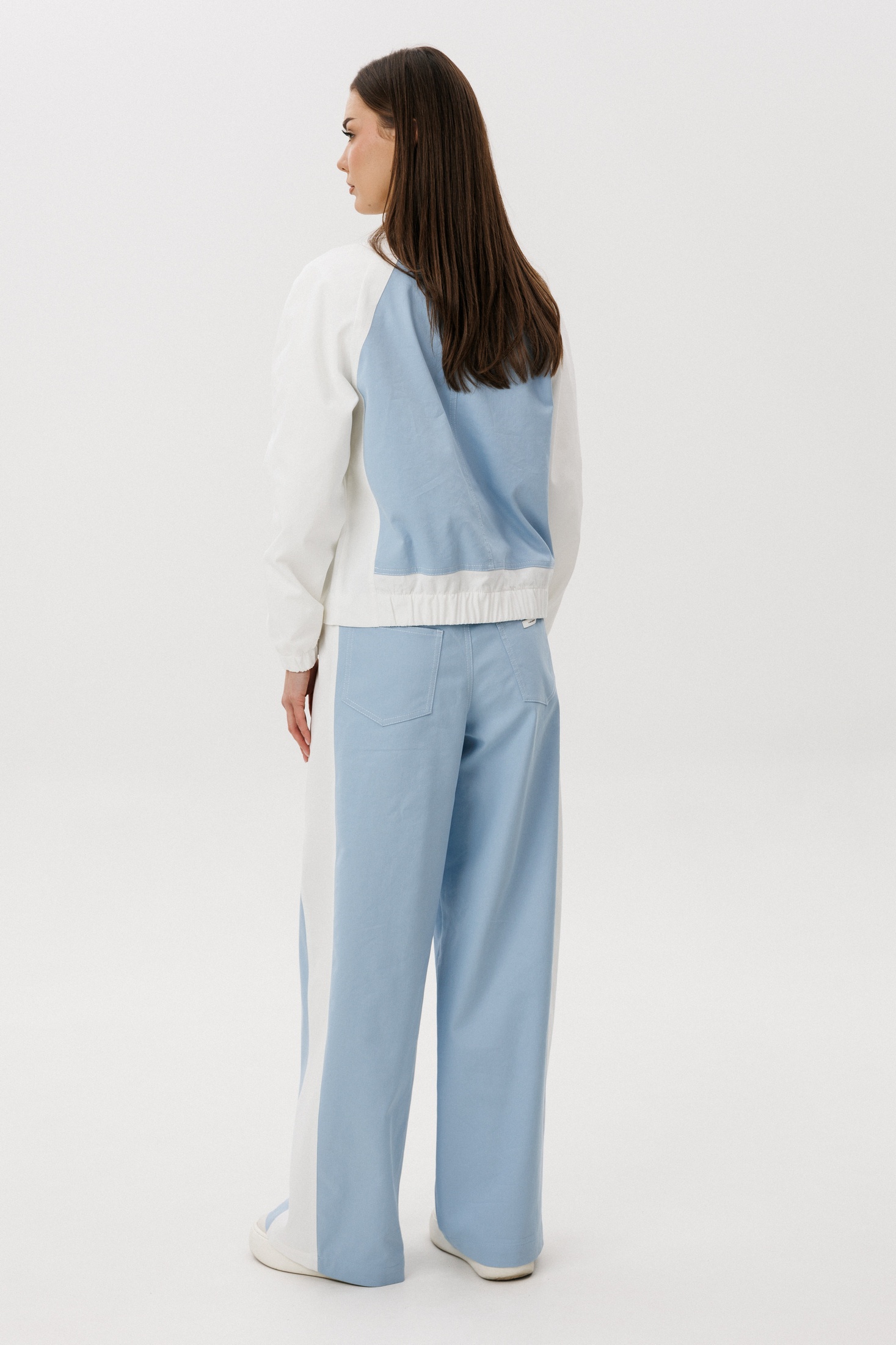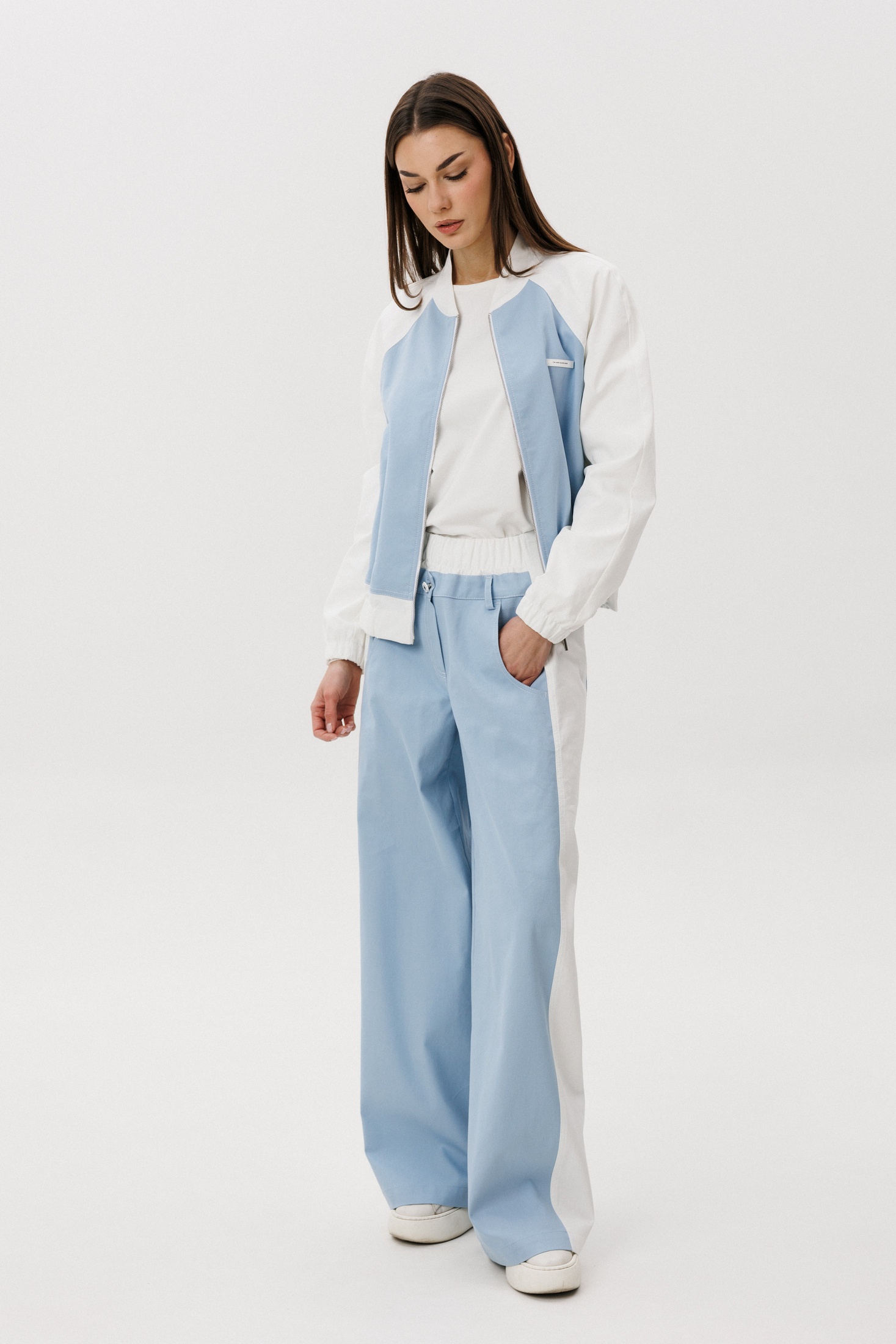 Костюм брючный 5343 FantaziaMod — это эффектный выбор для современного гардероба. Коллекция бренда FantaziaMod демонстрирует идеальное сочетание стиля и функциональности. Изделие выполнено из хлопчатобумажного полотна с добавлением полиэстера и эластана, что обеспечивает комфорт, воздухопроницаемость и долгую носку. Комплект включает в себя легкую куртку на молнии с контрастными белыми рукавами и широкие брюки с высокой посадкой, визуально вытягивающие фигуру. Стильный голубой оттенок делает костюм подходящим для повседневного и офисного стиля. Идеально подходит для теплого весеннего и летнего сезона. Присутствие функциональных карманов и минималистичной отделки придает образу современность и динамичность, а также позволяет комбинировать его с другими элементами гардероба для создания стильных аутфитов.