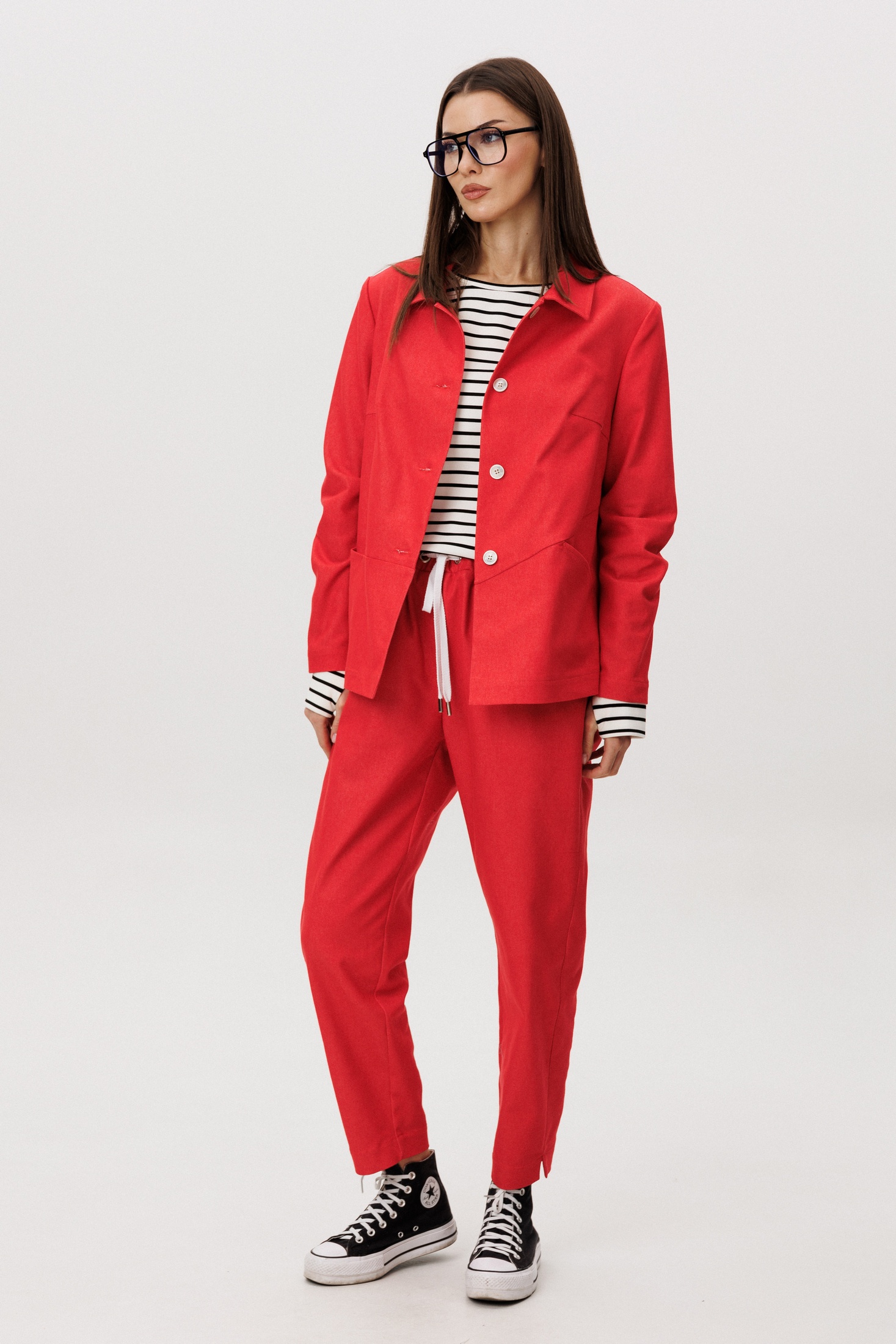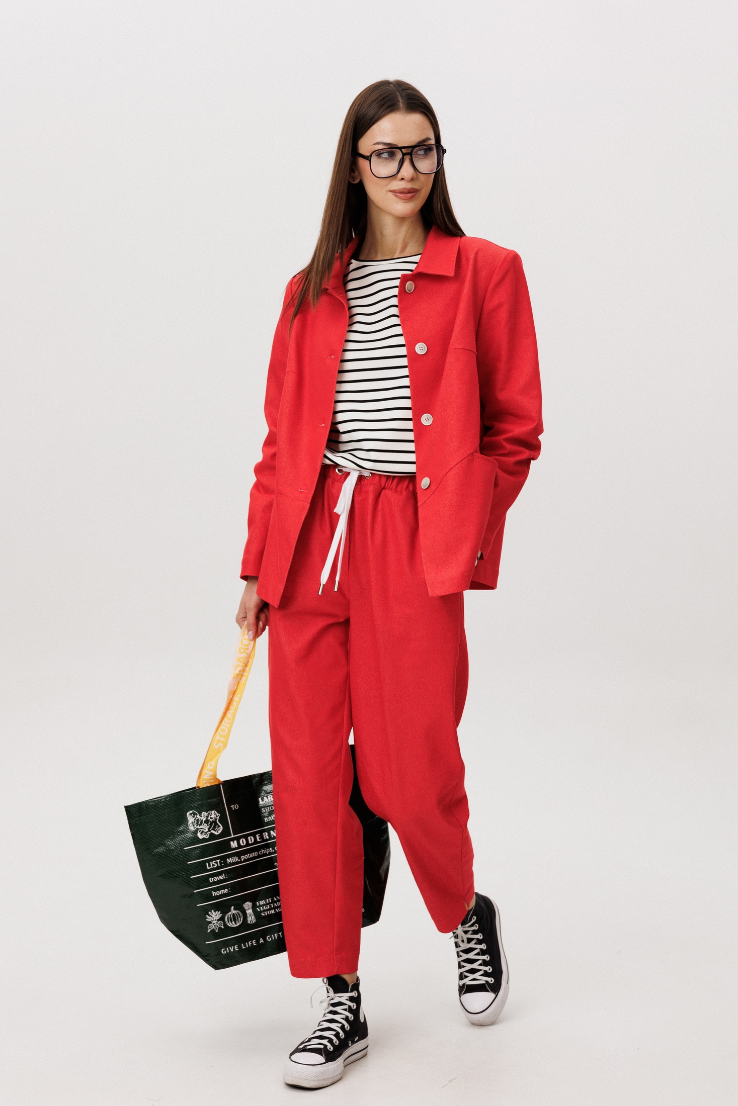 Костюм брючный 5352 FantaziaMod — это динамичный образ для современного города. Коллекция бренда FantaziaMod включает в себя костюм-тройку, выполненную из плотного цветного денима, который подчеркивает структуру и выразительность. Лаконичный крой жакета и брюк добавляет городской характер, делая модель идеальной для повседневной носки. Контрастный лонгслив в полоску привносит графичность и визуальную лёгкость. Брюки с эластичным поясом, люверсами и отделочным шнуром усиливают casual-настроение. Костюм подходит для весенне-осеннего сезона, предлагая комфорт и актуальный дизайн. Яркий красный цвет добавляет индивидуальности, делая вас заметным в любом окружении.