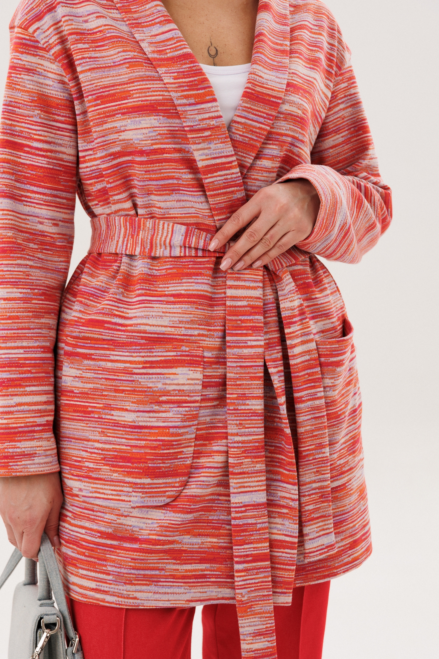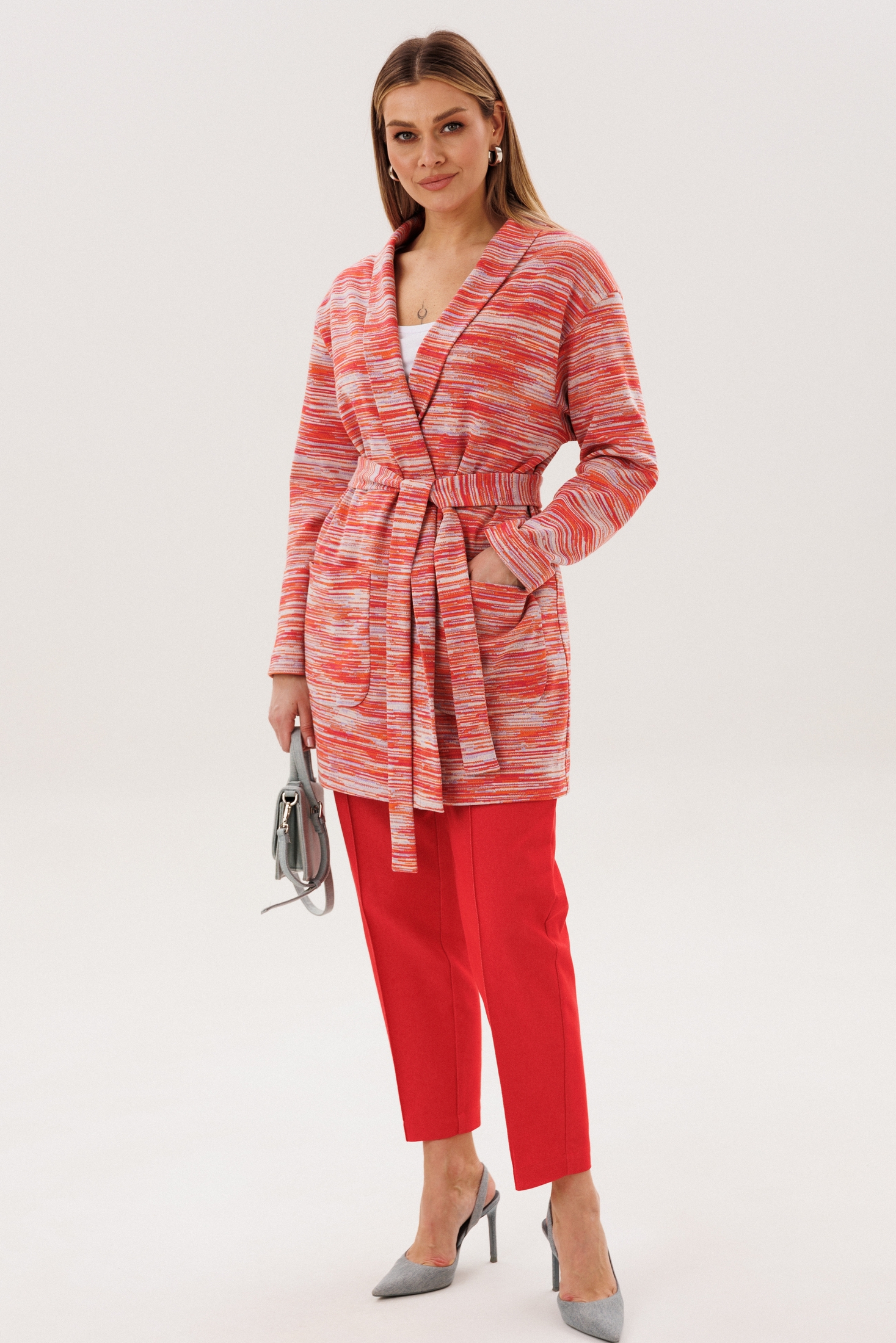 Костюм брючный 5394 красный штрипки FantaziaMod привлекает внимание великолепным сочетанием тканей и ярким дизайном. Коллекция бренда FantaziaMod предлагает кардиган из мягкого трикотажа с декоративным узором, который делает образ динамичным. Брюки выполнены из джинсовой ткани с эластичным поясом, что обеспечивает комфорт и свободу движений. Прямой силуэт и универсальный фасон комплементарны для повседневных городских образов. Яркий красный цвет сочетается с трикотажной текстурой, идеально подходя для весенне-летнего сезона.