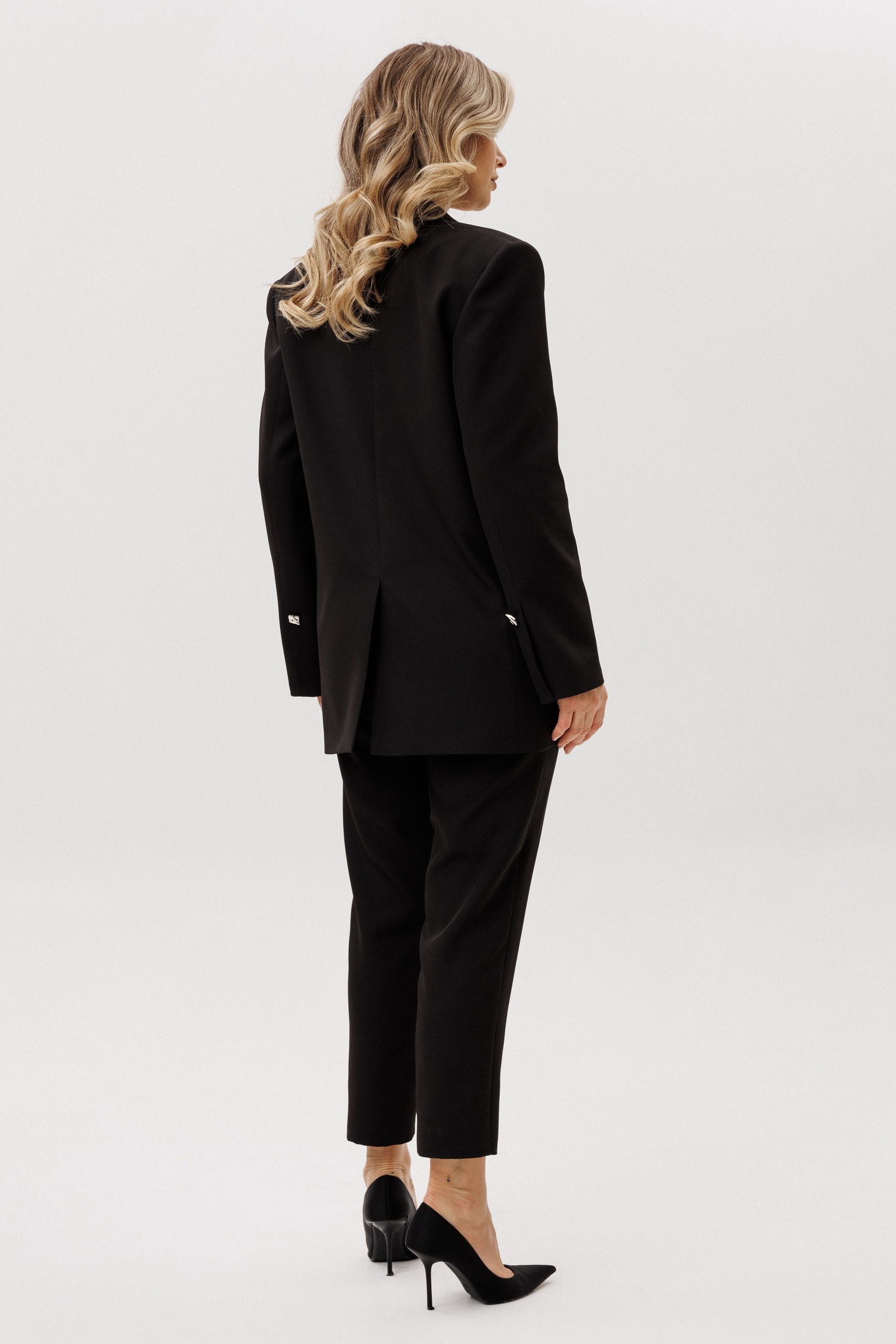 Костюм брючный 1593 Faufilure — идеальный выбор для стильных и уверенных женщин. Коллекция бренда Faufilure предлагает классический черный брючный костюм, выполненный из высококачественной ткани, включающей полиэстер, вискозу и спандекс. Жакет с центральной бортовой застежкой и прорезными карманами в рамку без клапана придают образу строгость и элегантность. Классические брюки с застежкой на молнию и пуговицу, а также боковыми карманами, удобно садятся по фигуре. Костюм отлично подходит для офисного или делового стиля, особенно в прохладное время года, благодаря плотному материалу и удачному крою. Черный цвет добавляет универсальности, позволяя комбинировать костюм с различными аксессуарами.
