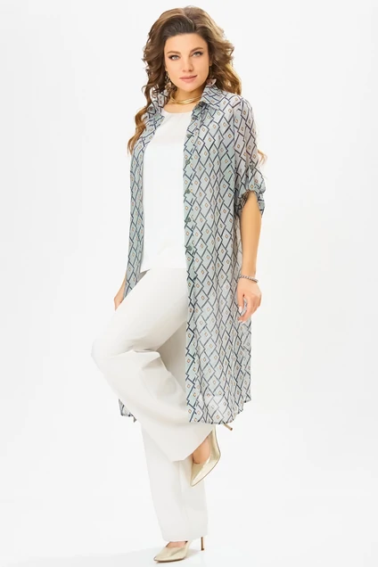Комплект "Димия" — это воплощение элегантности и утонченного стиля, созданное для тех, кто ценит комфорт, классику и изысканные детали. Легкие, струящиеся линии кардигана подчеркивают свободу движения, а прямой силуэт придает образу гармонию и благородство. Отложной воротник со стойкой рубашечного типа добавляет нотку аристократичности, а аккуратные застежки на петли и пуговицы создают завершенный, изысканный облик.