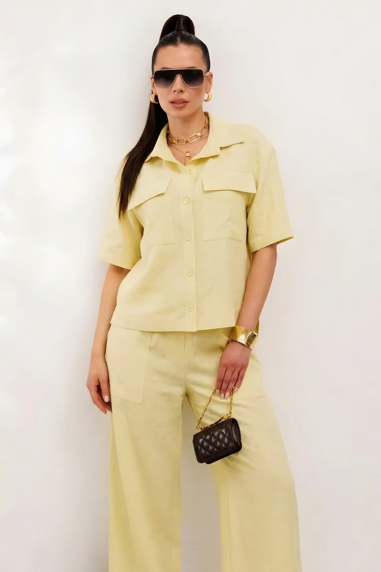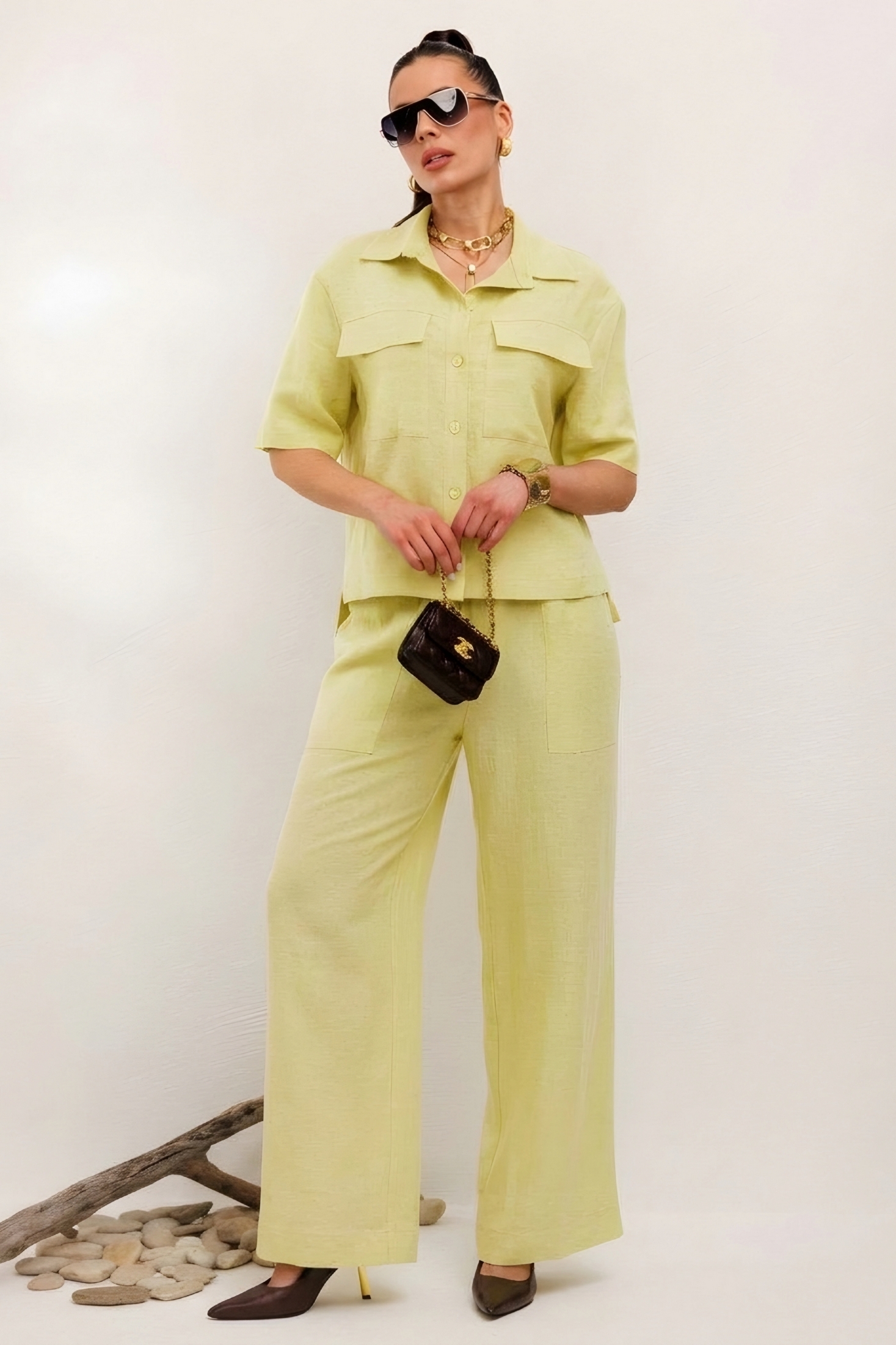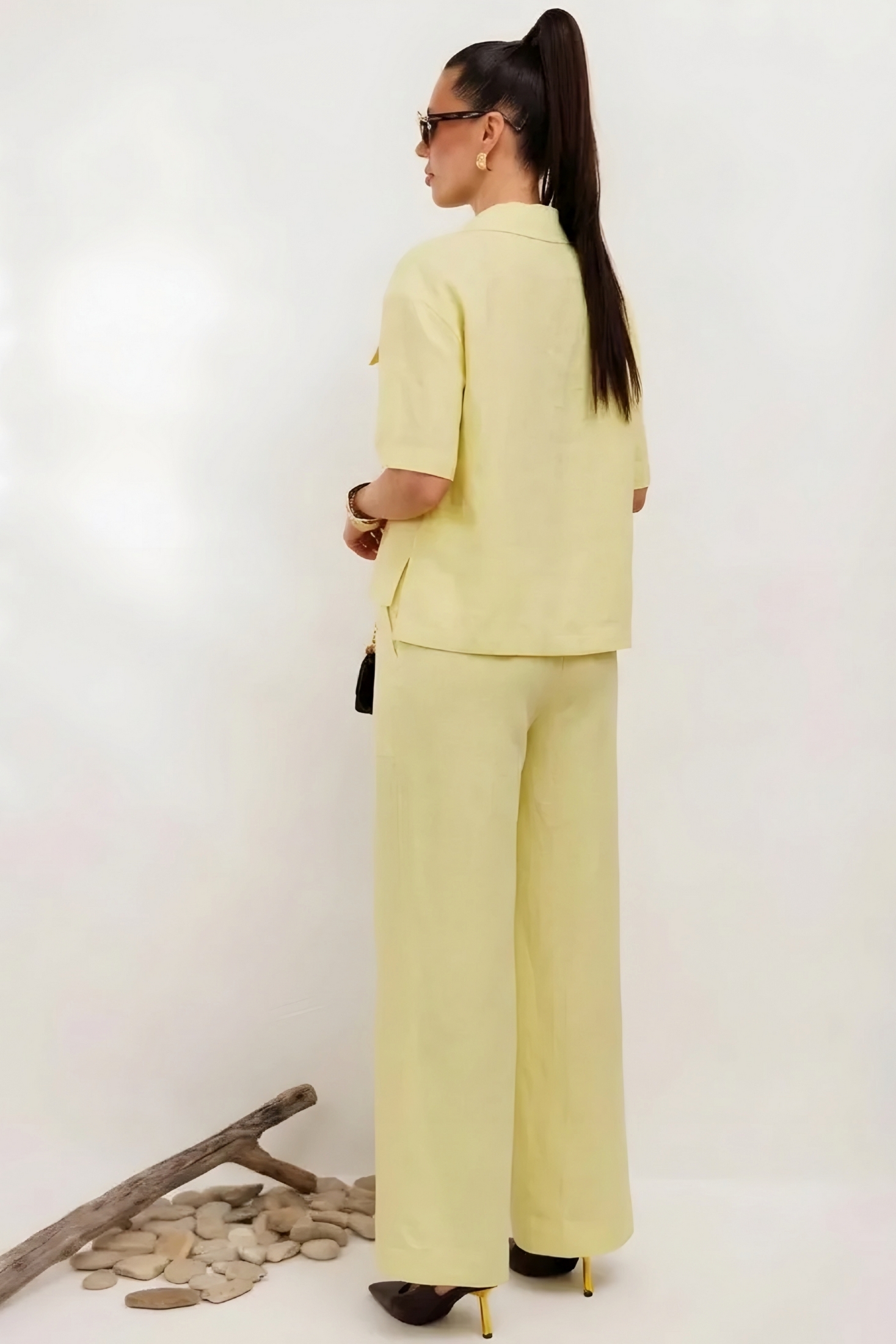 Костюм брючный 982-1 лимонный Галеан Стиль — это стильное решение для жарких дней. Коллекция бренда Галеан Стиль предлагает вам льняной костюм двойку, состоящий из рубашки прямого силуэта с воротником стойкой и застёжкой на пуговицы, а также брюк с резинкой и декоративным шнурком. Комплект отличается лимонным цветом и накладными карманами, которые добавляют функциональности. Материал из 100% льна обеспечивает комфорт и легкость. Отличный вариант для прогулочного и повседневного стиля в летний сезон.