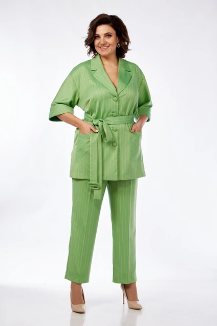 Костюм женский прямого силуэта из костюмной ткани, состоящий из жакета и брюк.