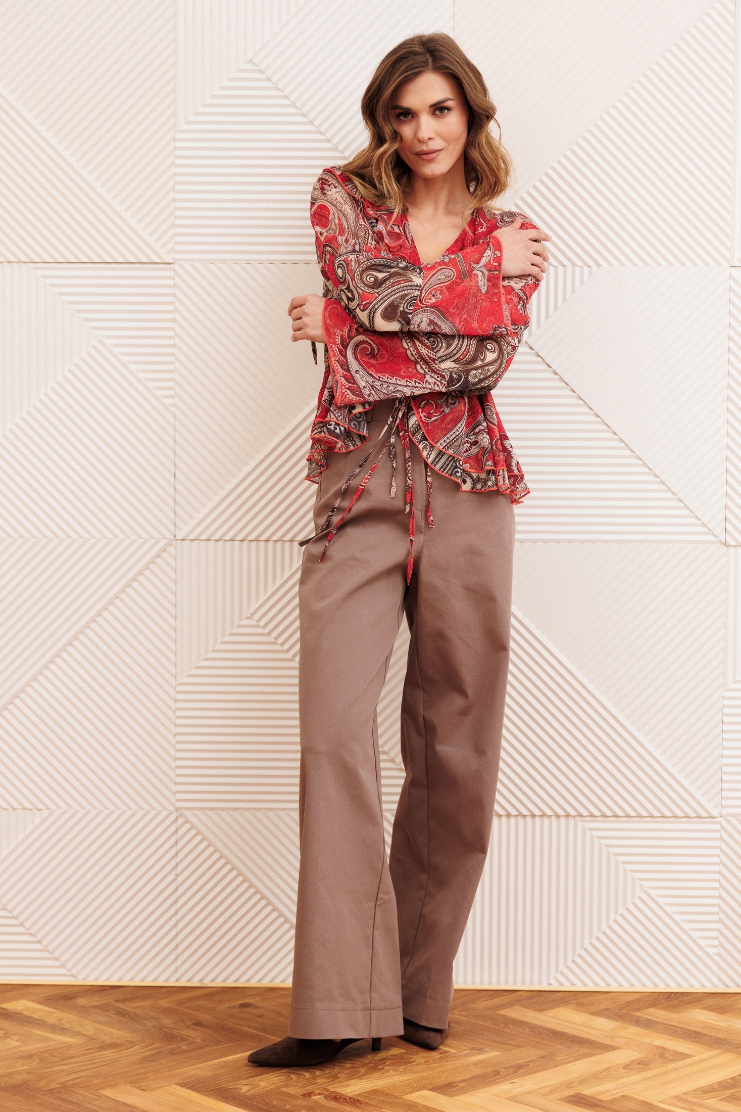 Костюм брючный 5403 красно-коричневый + капучино GIZART — это стильный выбор для повседневного гардероба. Коллекция бренда GIZART предлагает утонченный дизайн, который сочетает в себе гармонию и комфорт. Блузка выполнена из легкого полиэстера и оформлена двойными рюшами вдоль горловины, добавляя изюминку вашему образу. Брюки, изготовленные из джинсовой хлопковой ткани, обеспечивают удобную посадку благодаря притачному поясу и шлевкам. В комплекте карманы и декоративные вытачки, которые придают стильный вид. Длина брюк составляет 109 см, что идеально подходит для разных случаев. Костюм выполнен в красно-коричневом и капучиновом оттенках, что делает его идеальным выбором для теплых дней весны и лета.