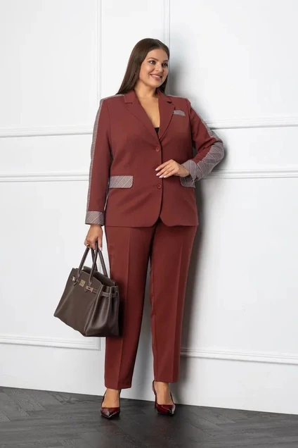Эксклюзивный трендовый брючный костюм из однотона в сочетании с клеткой от белорусского бренда ГолдСтайл станет просто находкой для девушек «plus size». Современная интерпретация и новый взгляд на понятие классики, отличный выбор для поклонников эксклюзивных дизайнерских вещей. Необычное сочетание классики с элементами «Denima» воплощают в себе смелое дизайнерское решение и инновационный подход. Пиджак прямого силуэта с горизонтальными кокетками и отрезными бочками отлично подойдет к любому стилю одежды, а также скроет все недостатки. Базовая модель с V-образным вырезом и воротником пиджачного типа на основе классического мужского костюма, застегивается на три пуговицы. Перед оформлен вертикальными вытачками до входа в прорезной карман (карманы функциональные с клапаном и двумя обтачками). Спинка выполнена по принципу джинсовки с горизонтальной кокеткой отрезной обтачкой и патами. Втачные рукава с отрезнвми манжнтами застегиваются на пуговицы. Пиджак на подкладке. Зауженные брюки со стрелками и косыми карманами вне трендов и сезонов, они подойдут к любому стилю одежды. Брюки средней посадки с отрезным поясом и косыми карманами слегка заужены к низу. Пояс с резинкой по бокам обеспечивает идеальную посадку на любую фигуру и талию. Отрезной пояс выполнен со шлевками для ремня, что очень удобно и практично. Застежка в поясе обработана по классической итальянской технологии петля-пуговица и гульфик с молнией. Белорусский бренд ГолдСтайл - гарантия отличного качества. Мы с трепетом и любовью относимся к созданию наших моделей для того чтобы они радовали Вас каждый день.