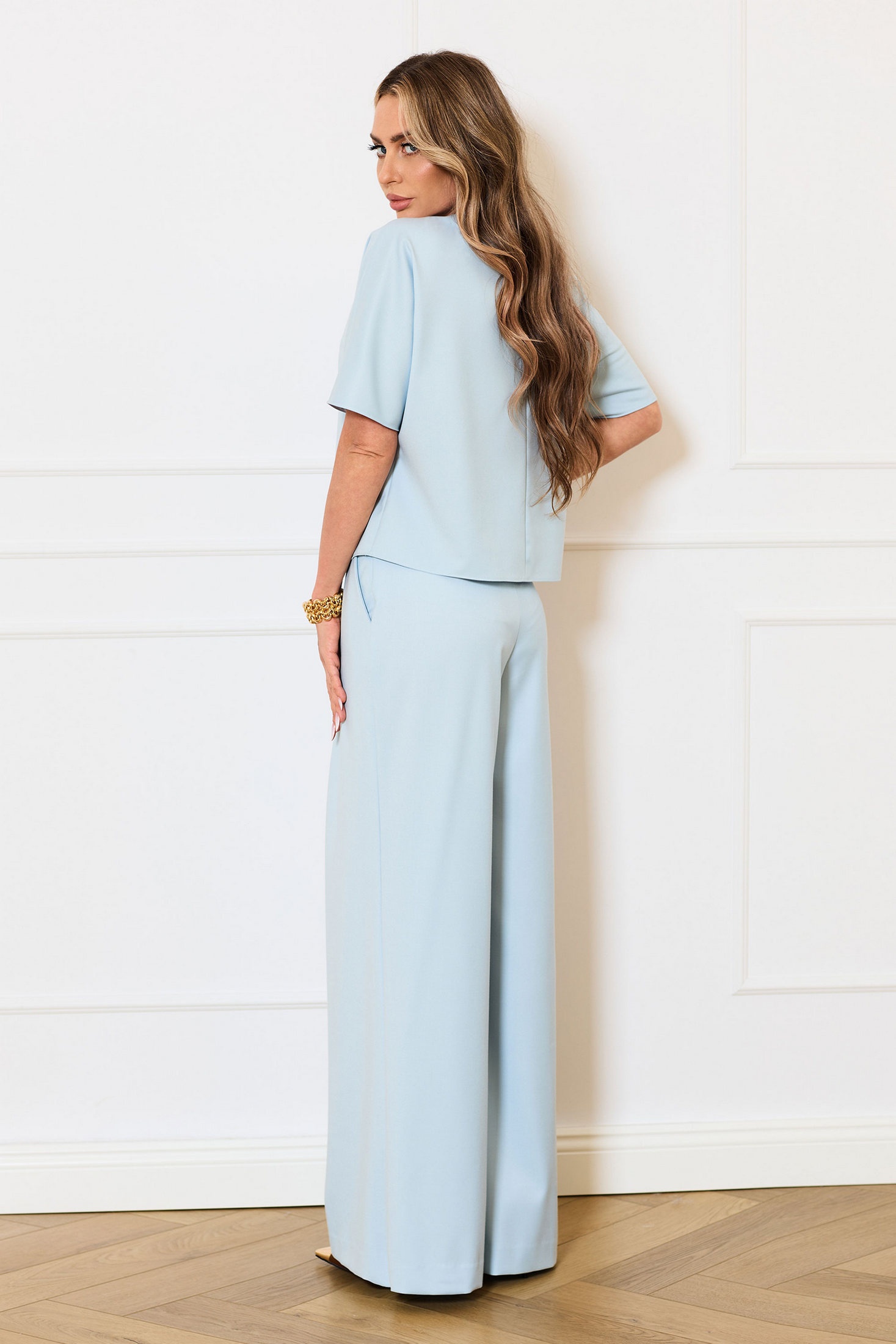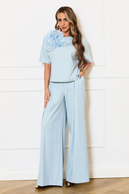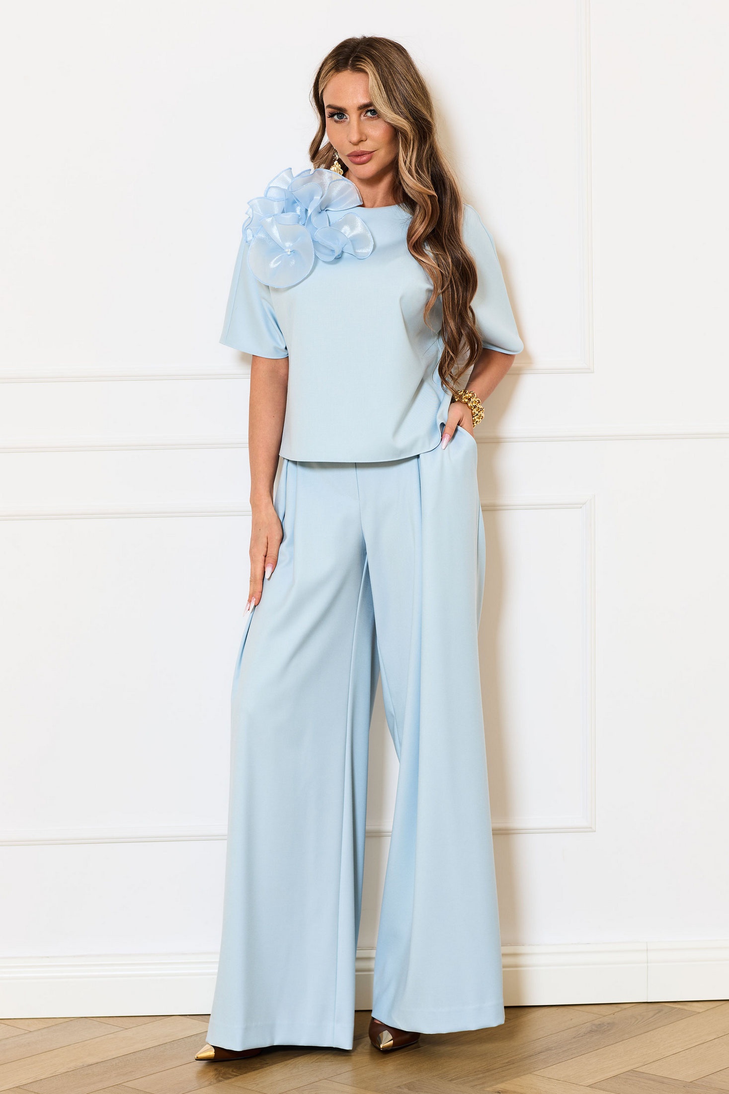 Костюм брючный 6745 голубой Golden Valley — это стильное и современное решение для вашего гардероба. Коллекция бренда Golden Valley демонстрирует изысканность и комфорт. Изготовленный из полиэстера и вискозы с добавлением спандекса, костюм обеспечивает комфорт и свободу движений. Голубой цвет придает образу свежесть и легкость. Блузка украшена органзовыми цветами и бусинами, что добавляет нотки изысканности. Брюки-расширенного силуэта с отрезным поясом и резинкой на спинке создают идеальную посадку, а карманы добавляют практичности. Костюм идеально подходит для весенне-летнего сезона и может использоваться как в повседневных, так и в деловых образах.