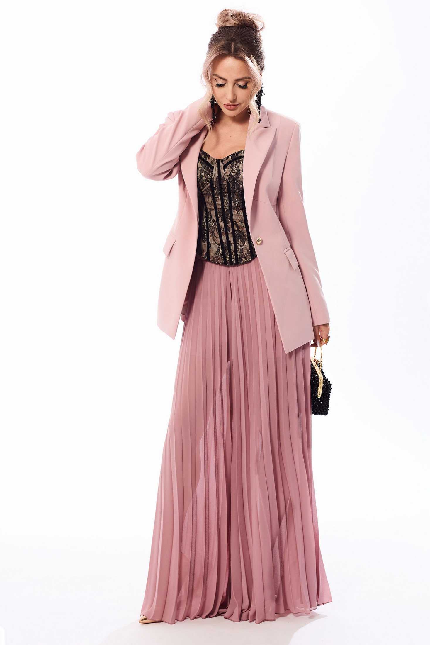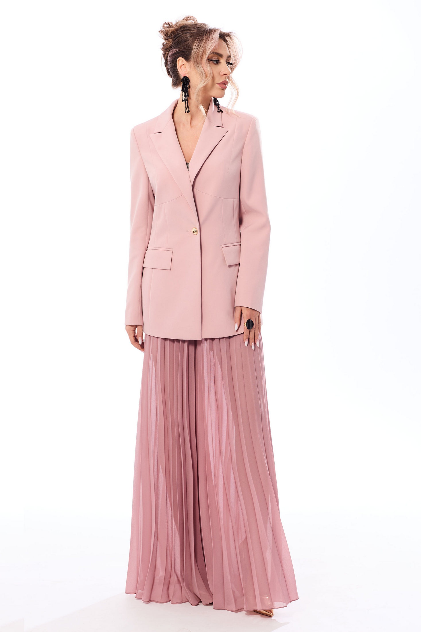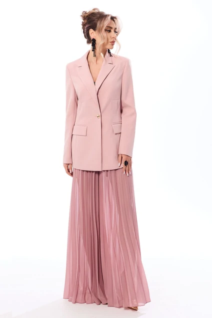 Костюм брючный 6758 розовый Golden Valley — уникальное сочетание стиля и комфорта. Коллекция бренда Golden Valley представляет модель из полиэстера с добавлением спандекса, что придаёт ткани прочность и эластичность. Этот элегантный костюм включает жакет с изящными прорезными карманами с клапанами и классическими лацканами. Брюки гофре создают лёгкость и непринуждённость образа, а резинка на талии обеспечивает комфортное ношение. Втачные длинные рукава грациозно дополняют общую композицию. Нежный розовый цвет и полуприлегающий силуэт пиджака делают костюм идеальным выбором для офисных и деловых мероприятий в теплое время года.