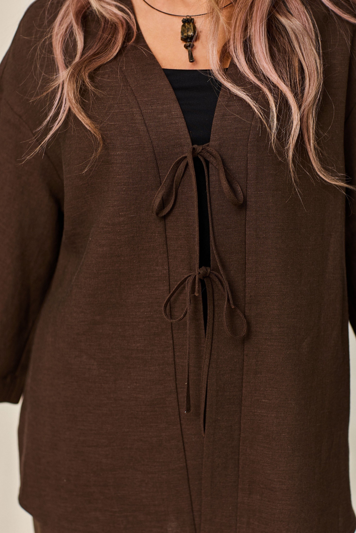 Костюм брючный 6759 коричневый Golden Valley — это стильный выбор для любого случая. Коллекция бренда Golden Valley сочетает в себе комфорт и современный дизайн. Костюм выполнен из легкого и натурального материала, содержащего 55% лён и 45% вискозу, что обеспечивает комфорт при носке. Верх с центральной застежкой на завязки и V-образным вырезом создают женственный и элегантный образ. Спущенные плечи и рукава длиной 3/4 добавляют современный акцент. Брюки с отрезным поясом и резинкой удобны и практичны. Данный комплект отличается прямым силуэтом и наличием накладных карманов, что делает его функциональным. Единая цветовая гамма в коричневом оттенке подчеркивает изысканность и может стать основой вашего офисного или повседневного гардероба.