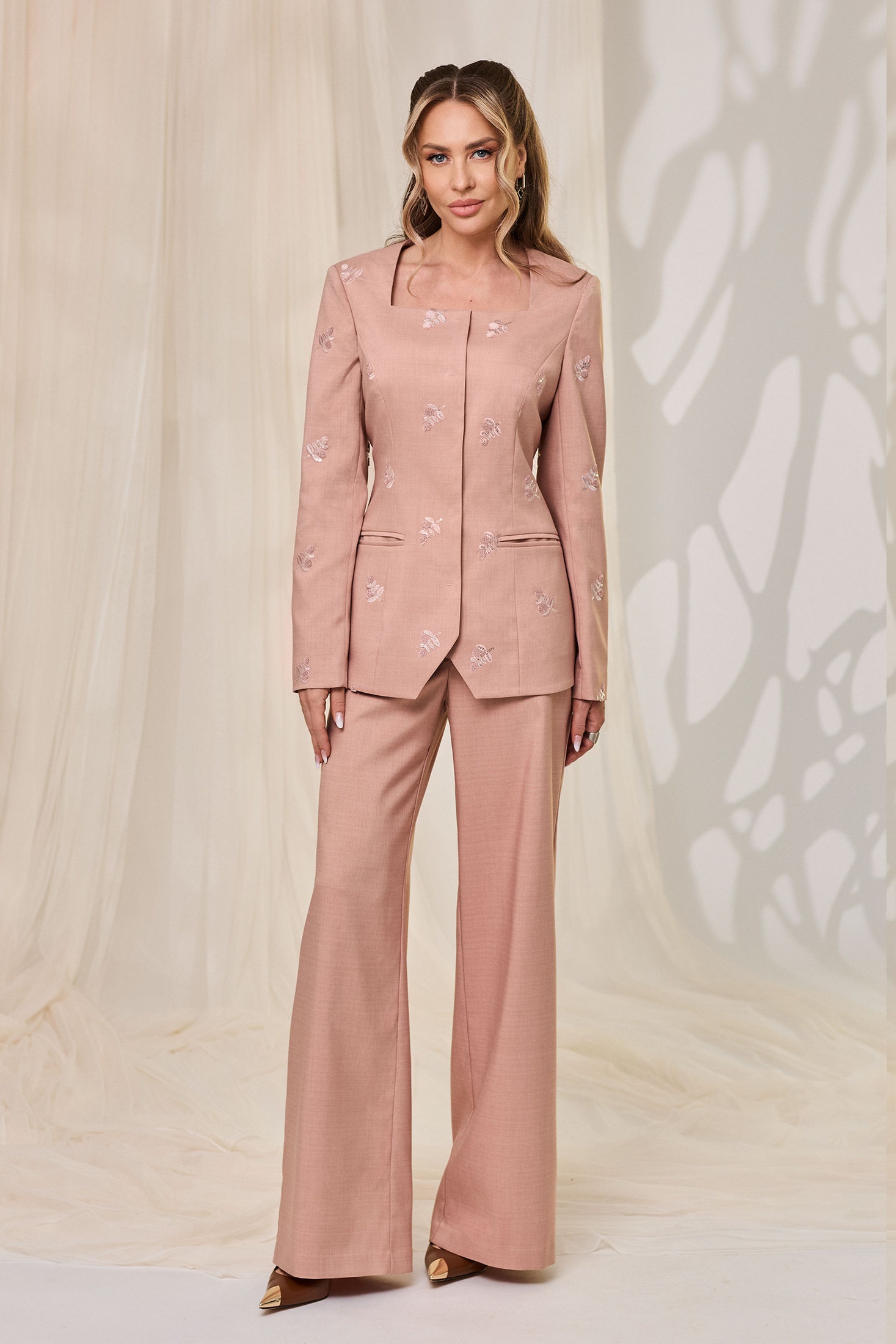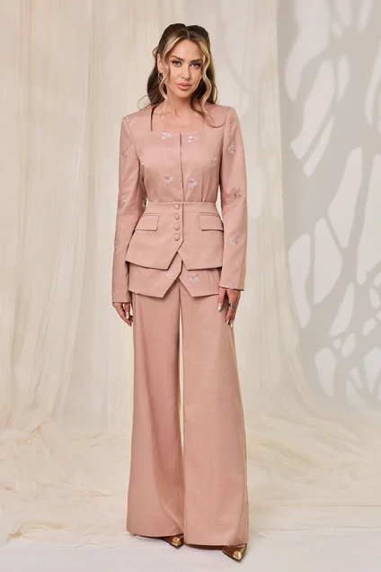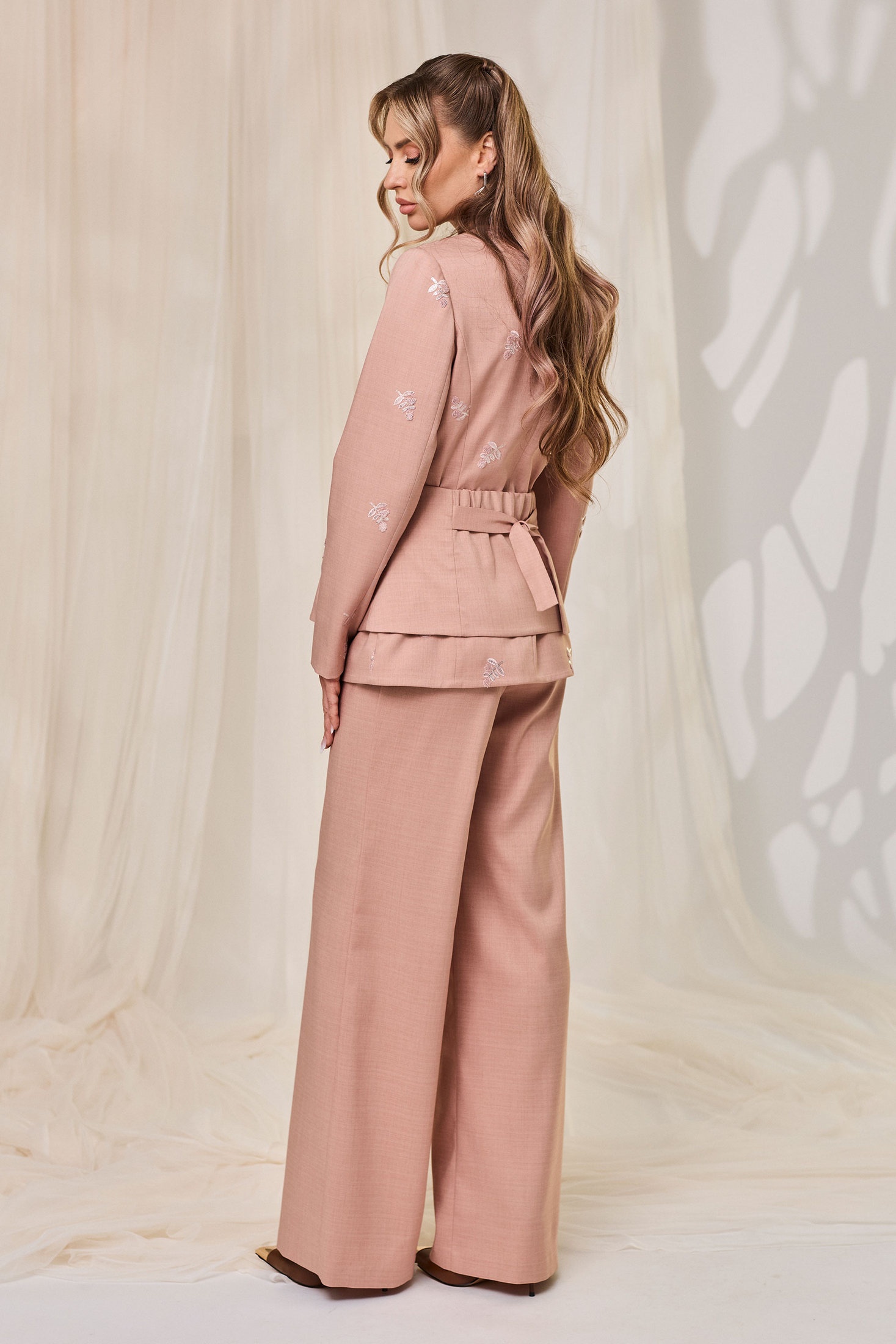 Костюм брючный 6771 розовый Golden Valley подчеркнет ваш стиль и индивидуальность. Коллекция бренда Golden Valley предлагает изысканный дизайн с текстильным комфортом и эластичностью благодаря полиэстеру и спандексу. Жакет с центральной застежкой на кнопки и фигурным вырезом горловины дополняет прорезные карманы, создавая современный и удобный образ. Съемная баска с присборенной на резинке талией добавляет уникальности и комфорта. Брюки с отрезным поясом и застежкой гульфик оснащены боковыми карманами. Розовый цвет подчеркивает элегантность, а вышивка с пайетками придает нарядности. Полуприлегающий силуэт и длинные рукава делают этот костюм идеальным выбором для делового или нарядного случая в любое время года.