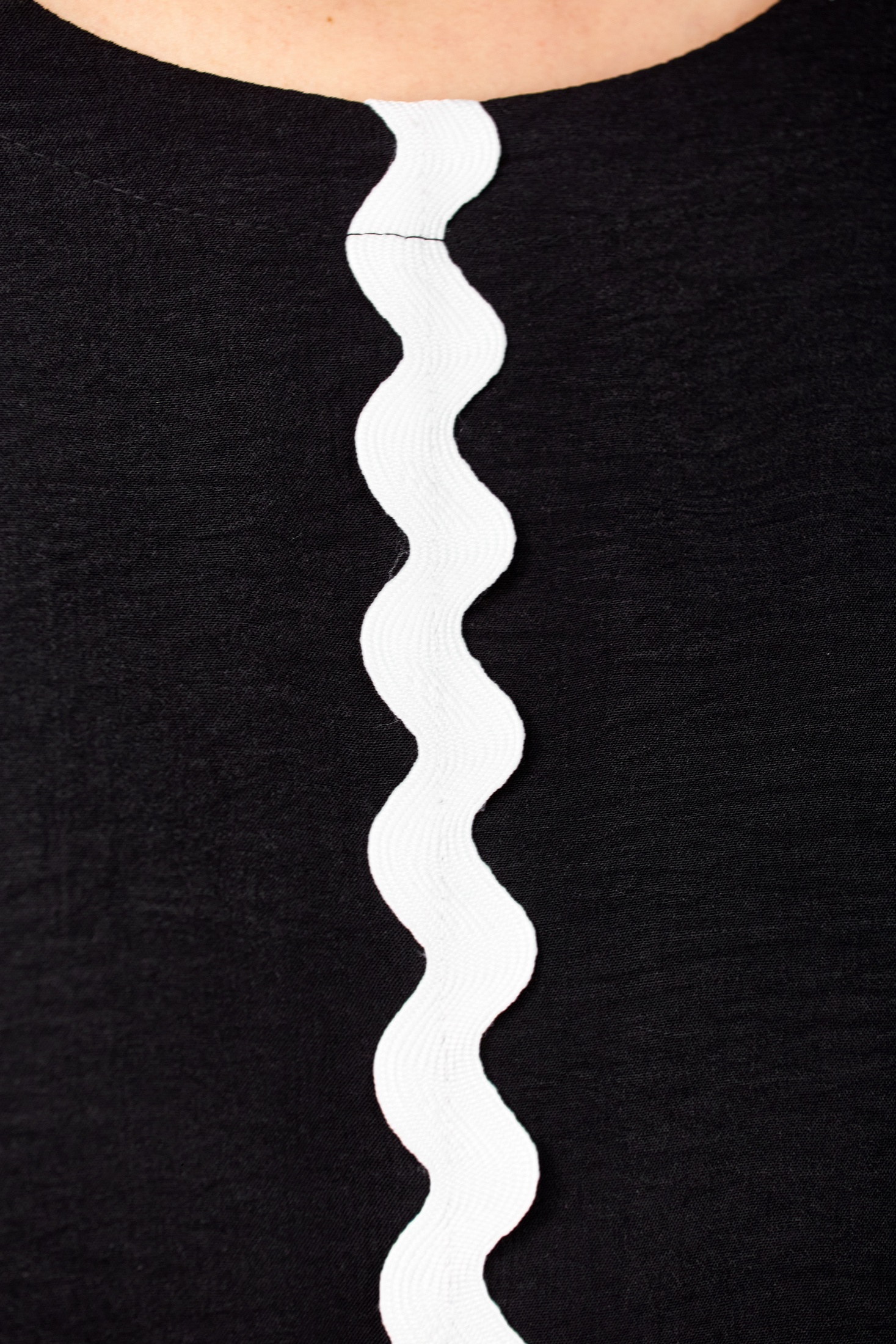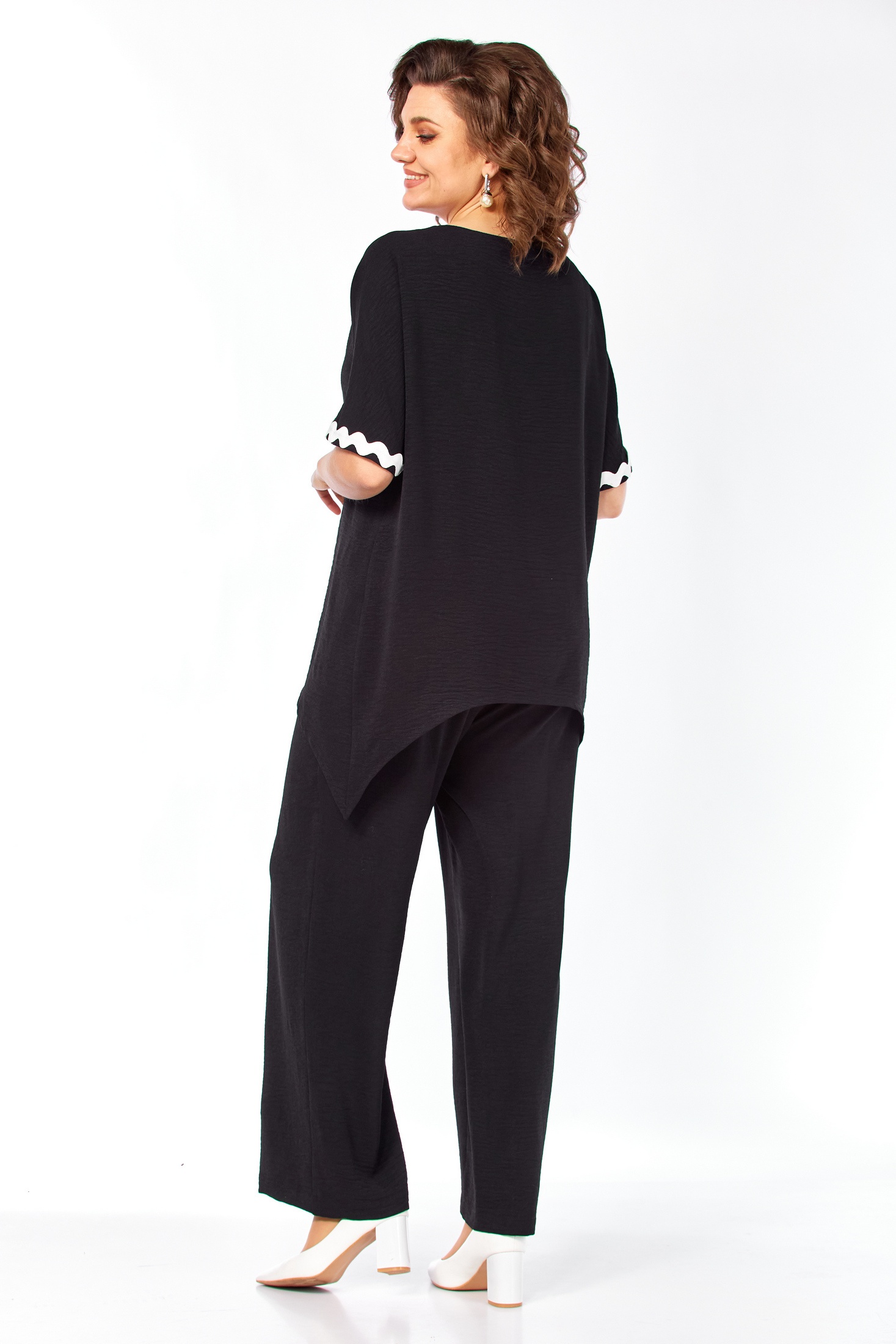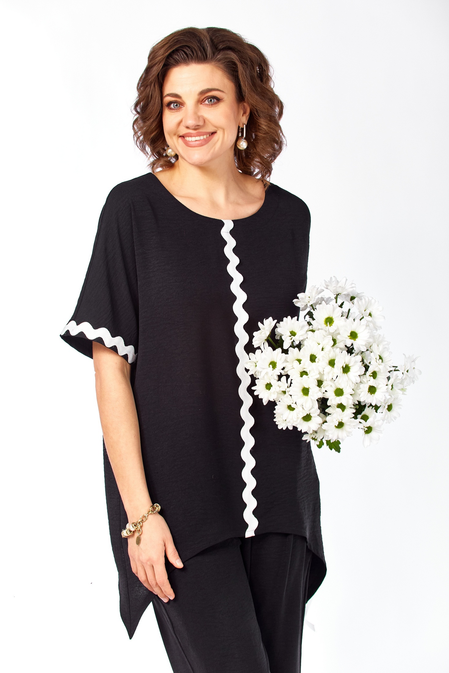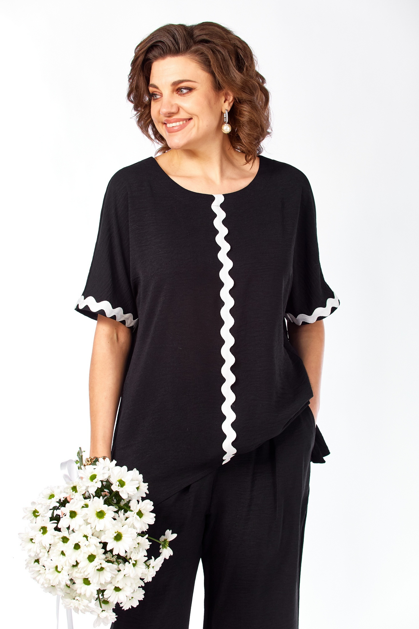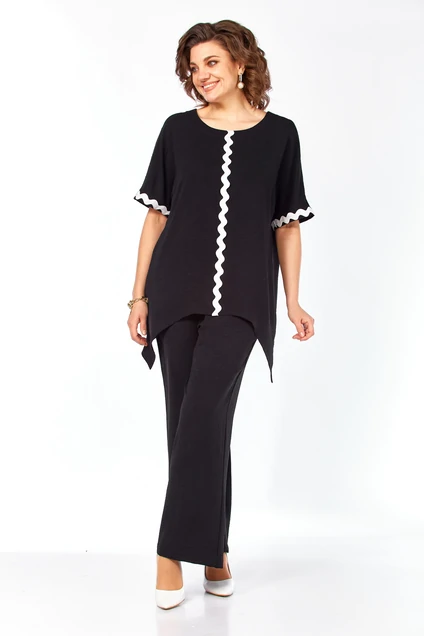 Костюм брючный 274 черный Grace for you из коллекции бренда Grace представляет собой стильный выбор для вашего гардероба. Благодаря использованию легкой ткани соренто, костюм обеспечивает комфорт и создает идеальный силуэт. Топ свободного силуэта с цельнокройным рукавом дополнен декоративной тесьмой в виде волны, что придает образу изысканности. Брюки прямого кроя с эластичным поясом и наклонными карманами делают костюм практичным и удобным. Чёрный цвет и лаконичный дизайн подходят для повседневного использования, а фасон и материал делают его идеальным выбором для весенне-летнего сезона.