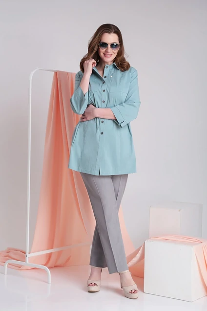 Костюм брючный 2939 мята + серый Ивелта Плюс