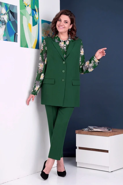 Костюм брючный 3631 зеленый Ивелта Плюс