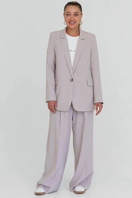 Костюм брючный женский - это идеальный выбор для современной женщины, которая ценит комфорт и стиль! Жакет прямого свободного кроя с лацканами идеально подойдет для создания делового образа, а также для вечерних выходов. Два прорезных кармана с клапаном добавляют жакету функциональности и элегантности. Прямой длинный рукав обеспечивает комфорт и свободу движений. Подкладка из 100% хлопка гарантирует приятные ощущения при носке и оптимальный микроклимат. Брюки палаццо - это модный и удобный фасон, который подходит для любого типа фигуры. Пояс сзади эластичный, что обеспечивает комфортную посадку на талии. Спереди два боковых кармана с отрезным бочком добавляют брюкам функциональности и шарма. Костюм выполнен из качественных материалов, что гарантирует его долговечность и сохранение первоначального вида даже после многочисленных стирок. Благодаря свободному крою, жакет и брюки идеально садятся на любую фигуру, скрывая возможные недостатки и подчеркивая достоинства. Этот костюм брючный станет незаменимым элементом вашего гардероба, позволяя создавать разнообразные образы - от строгих деловых до вечерних нарядов. Он идеально подойдет для работы, деловых встреч, свиданий и праздничных мероприятий. Будьте уверены в своей привлекательности и комфорте с этим стильным и удобным женским костюмом! В реальности цвет может незначительно отличатся.