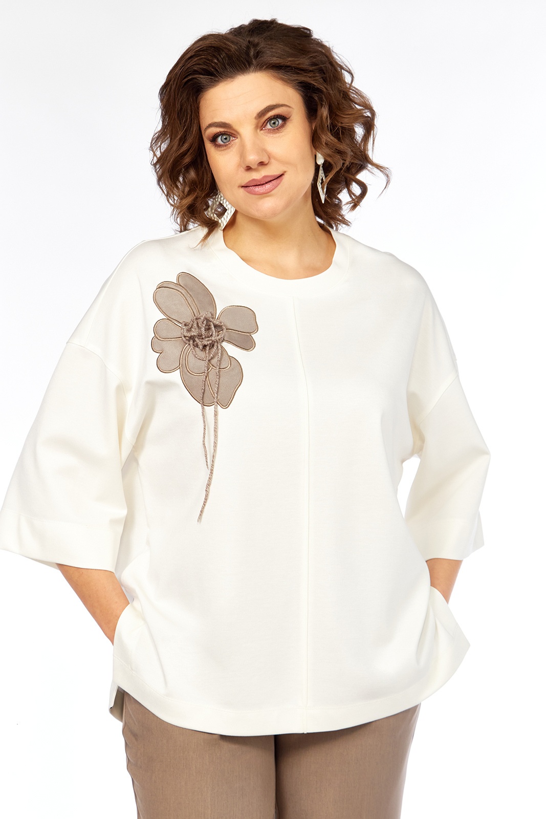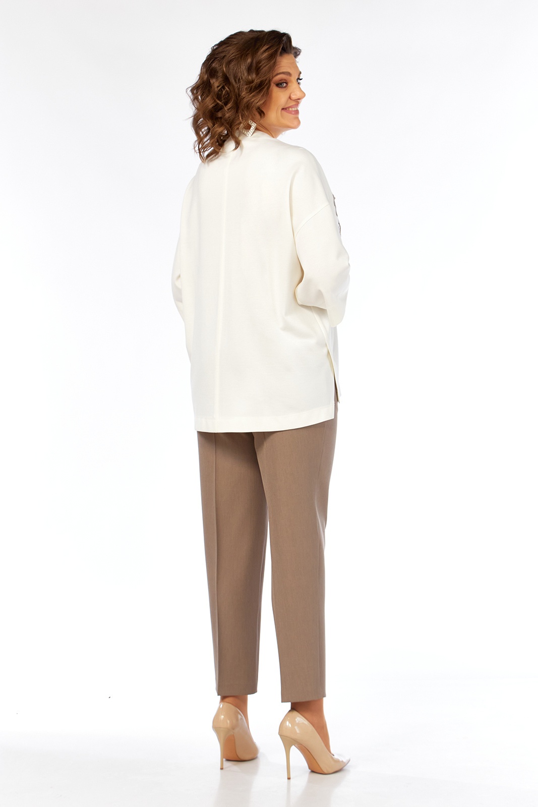 Костюм брючный 3464 Jurimex представляет собой идеальный выбор для тех, кто ценит стиль и комфорт. Коллекция бренда Jurimex выполнена из мягкой вискозы и прочного полиэстера, что обеспечивает долговечность и удобство в носке. Джемпер свободного силуэта с дизайнерской вышивкой подчеркивает современный стиль, а классическая посадка брюк с эластичной тесьмой делает комплект идеальным для повседневного использования. Костюм может быть использован в офисе или для прогулок в прохладное время года. Декоративные швы и фигурные шлицы добавляют оригинальности, а элегантные карманы делают его функциональным. Изящный бежевый цвет и мягкий крой создают стильный образ, подходящий для любого случая.