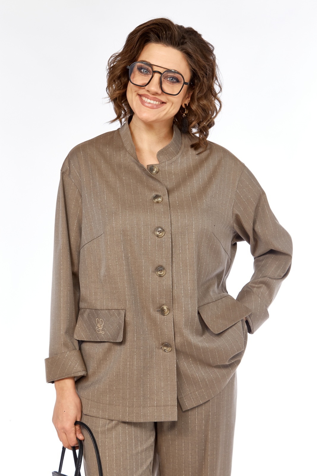 Костюм брючный 3468 Jurimex — стильный и практичный выбор для будничного гардероба. Коллекция бренда Jurimex предлагает классический образ, выполненный из костюмной ткани с полосками, состоящий из жакета и брюк. Жакет прямого силуэта с воротником-стойкой и центральной застежкой на пуговицы демонстрирует изысканность в простоте. Прорезные карманы с клапанами и дизайнерская вышивка на клапане добавляют акценты. Брюки свободного кроя, частично на эластичной тесьме для дополнительного комфорта, дополняют комплект. Полиэстер в составе ткани обеспечивает прочность, вискоза добавляет мягкость, а эластан — эластичность. Длина жакета по спинке — 69 см, длина брюк — 97 см, делают костюм идеальным выбором для офиса или деловых встреч в прохладный сезон.