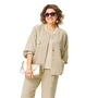 Воротник пиджачный, застежка центральная на 2 петли и пуговицы. По переду настрочены большие накладные карманы. Спинка со средним швом, шлица.