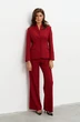 Элегантный женский брючный костюм кремового цвета — идеальный выбор для деловых и торжественных мероприятий. Костюм состоит из утонченного приталенного жакета и классических брюк. Жакет дополнен оригинальным воротником-стойкой, который плавно переходит в борта, создавая выразительный силуэт. Модель застегивается на ряд элегантных пуговиц, а на передней части расположены прорезные карманы в рамку, добавляющие функциональности. Рукава оформлены шлицами с пуговицами для добавления изысканности. Брюки, выполненные в классическом стиле, имеют карманы по бокам и слегка расклешенный крой, что придает изделию особую изящность и позволяет аккуратно сочетаться с обувью на каблуке. Этот костюм — отличный выбор для создания строгого, но женственного образа.