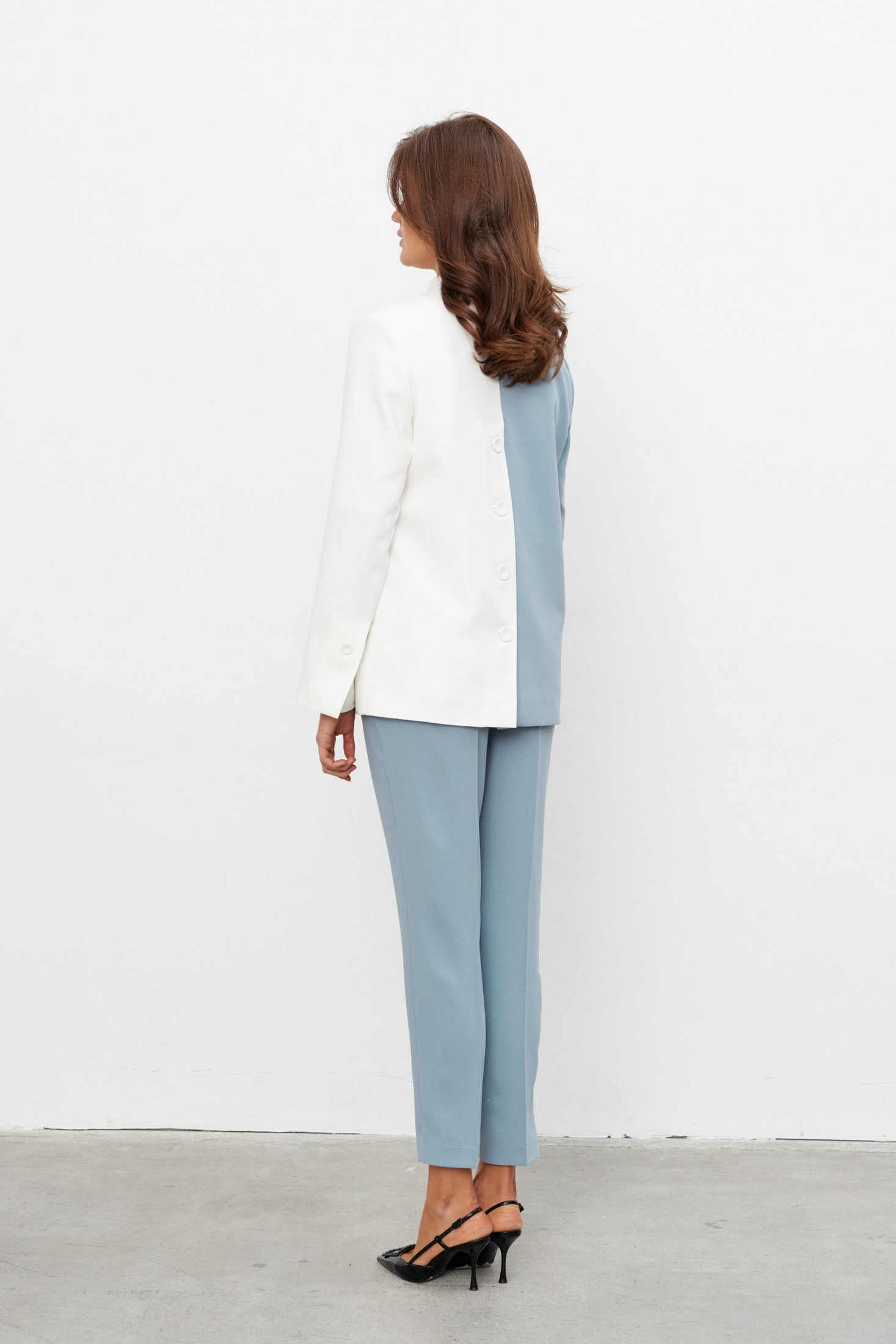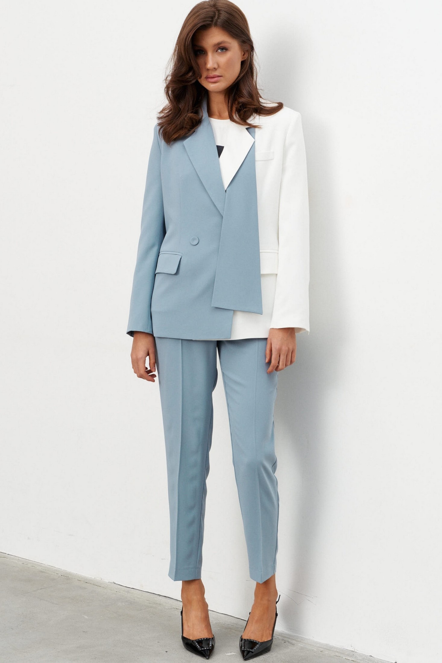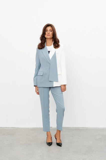 Костюм брючный 8052-1 KaVari plus size сочетает в себе уникальный стиль и комфорт. Коллекция бренда KaVari воплощает элегантность и современность. Брючный костюм выполнен из поливискозной ткани, обеспечивающей комфорт и износостойкость. Двубортный жакет прямого силуэта отличается контрастным сочетанием цветов и декоративным элементом в виде галстука. Высокая шлица по среднему шву спинки придаёт дополнительную свободу движений. Брюки-дудочки на притачном поясе с застёжкой на молнию и крючок идеальны для офисного сезона. Карманы с клапанами добавляют практичности. Длина жакета по заднему шву составляет 69 см, длина рукава — 61 см, а брюк по боковому шву — 96 см. Цветовая палитра костюма — белый и серый, что делает его идеальным выбором для делового образа.