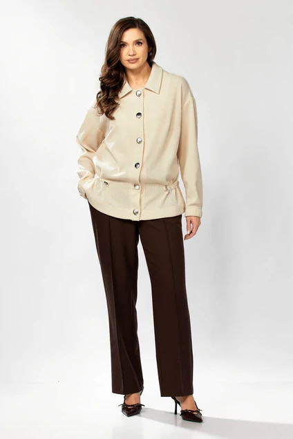 Костюм брючный 8063 KaVari plus size — отличный выбор для тех, кто ценит комфорт и стиль. Коллекция бренда предлагает бомбер прямого силуэта с длинными спущенными рукавами, обработанными резинкой, и брюками с отстроченными кантами. Материал костюма состоит из полиэстера, вискозы и спандекса, что обеспечивает легкость и дыхание ткани. Длина рукава составляет 75 см, длина спинки по среднему шву — 66 см, а длина брюк по боковому шву — 105 см. Костюм представлен в бежево-коричневой гамме, подходит для повседневного и делового стиля, идеально впишется в гардероб для осенне-весеннего сезона. Карманы, декоративный элемент на кокетке и кулиса на талии добавляют функциональности и изящества образу.