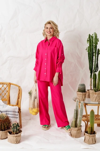 Идеальный костюм для летней жары, в нем ваша кожа будет дышать. Он выполнен из мягкого льна с эффектом мятости. Отличный вариант, как для городского лета, так и отдыха на море.