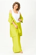 Брючный женский 3-х предметный комплект из облегченной крэшованой ткани с добавлением вискозы. Жакет свободного облегания, удлиненный, однобортный, воротник "шалька", рукав 3/4 с отварачивающимся манжетом. По переду и спинке подрез на уровне талии, ниже подреза по переду две встречных складки и клапаны, по центру спинки ниже подреза встречная складка и хлястик с декоративными пуговицами. Брюки длинные, прямые, с карманами в боковых швах, гульфиком с застежкой на молнию и отрезным поясом с резинкой. Топ свободного облегания, без рукава, вырез горловины мягкое "каре".