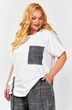 Комфортный летний брючный комплект, состоящий трикотажной вискозной блузы и брюк из мягкой легкой ткани. Блуза свободного облегания, рукав "кимоно", вырез горловины круглый, функцию декора выполняет карман и кулиса из отделочной ткани по переду блузы. Брюки прямые, свободного облегания с карманами в боковых швах и поясом на резинке.