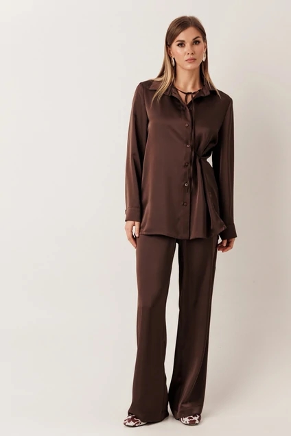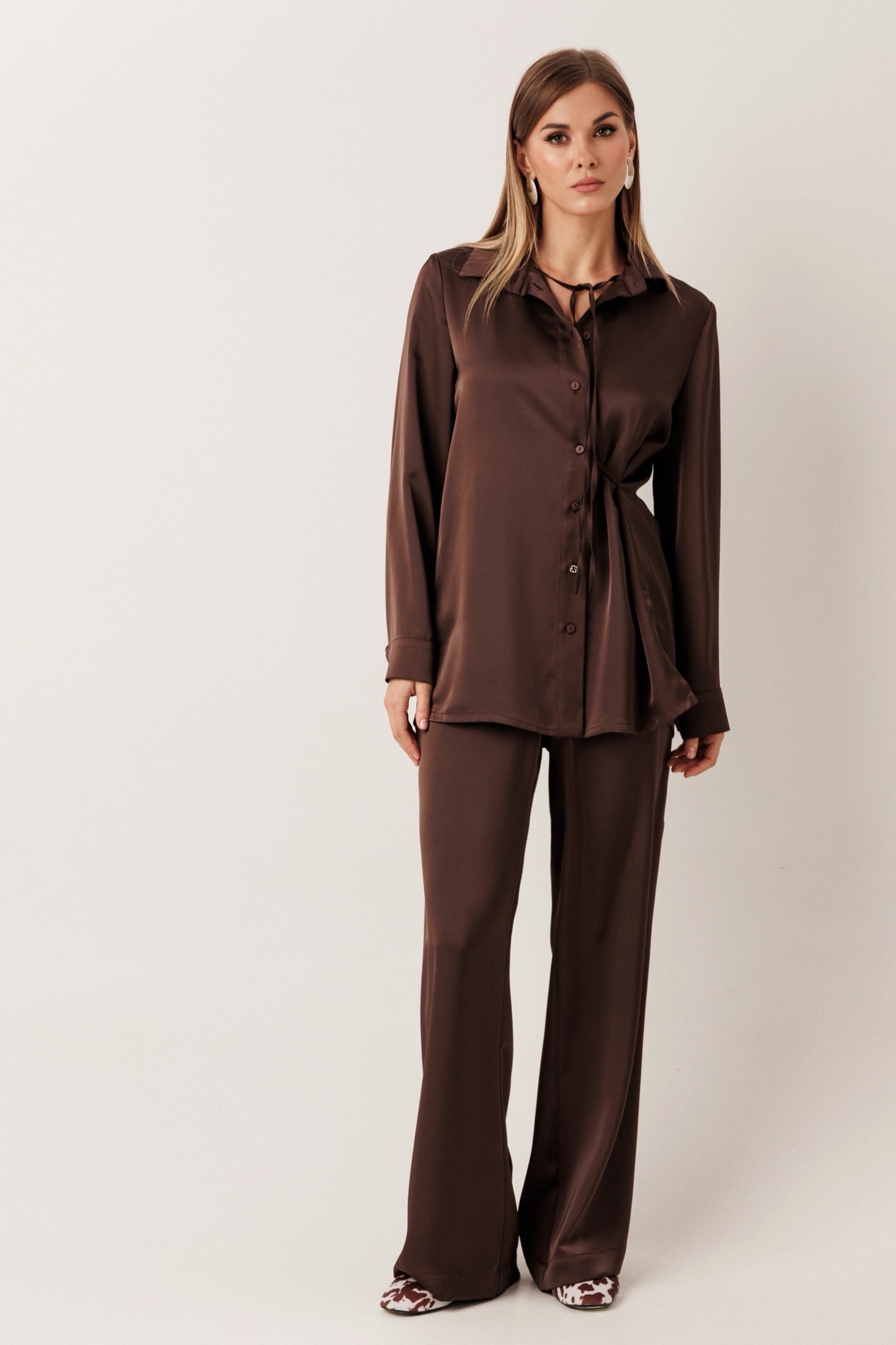 – трансформер: можно носить приталенно, застегнув потайной ремешок, или создать расслабленный образ, завязав внутренние ленты и спустив на плечи.