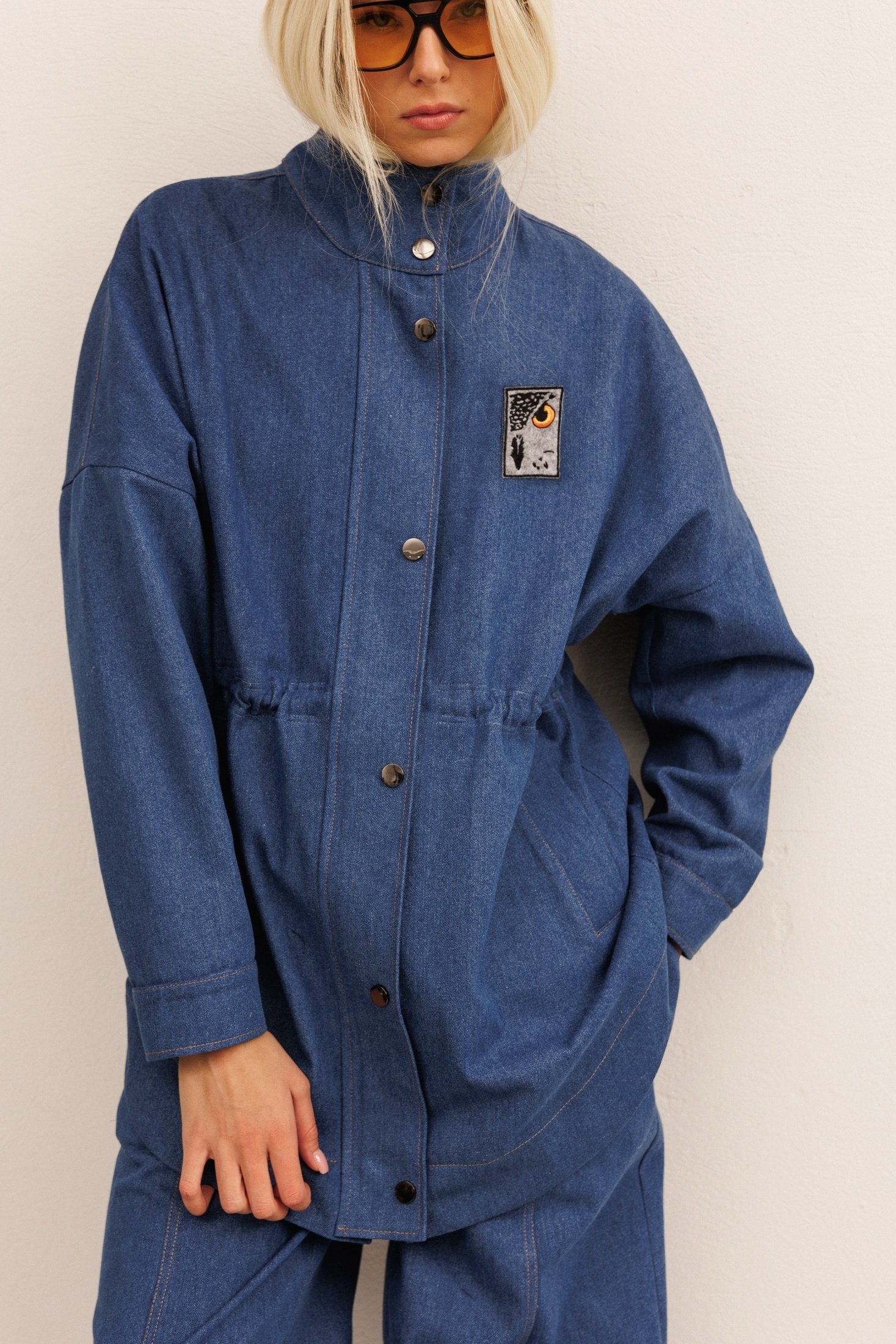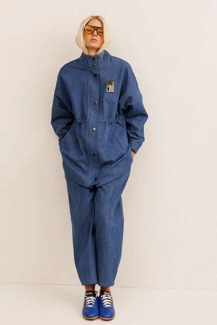 Костюм брючный 30013 синий KOKOdea — это изысканное сочетание комфорта и стиля. Коллекция бренда KOKOdea предлагает свободный силуэт жакета из джинсовой хлопковой ткани. Модель характеризуется спущенной линией плеча и длинными рукавами. Важными элементами являются высокая стойка и кулиса, создающие акцент по переду, а также застёжка на молнию с планкой на кнопках. Джакет украшает дизайнерская брошь с вышивкой «силуэт совы», придающая образу уникальность. Брюки имеют силуэт «банан», расширенный вверху и зауженный к низу, и оснащены поясом на резинке для удобства. Вертикальные швы с отстрочкой и фигурные накладные карманы добавляют динамику образу. Синий цвет изделия создаёт классическую основу для любого гардероба. Костюм идеально подойдёт для повседневной носки в демисезонный период.