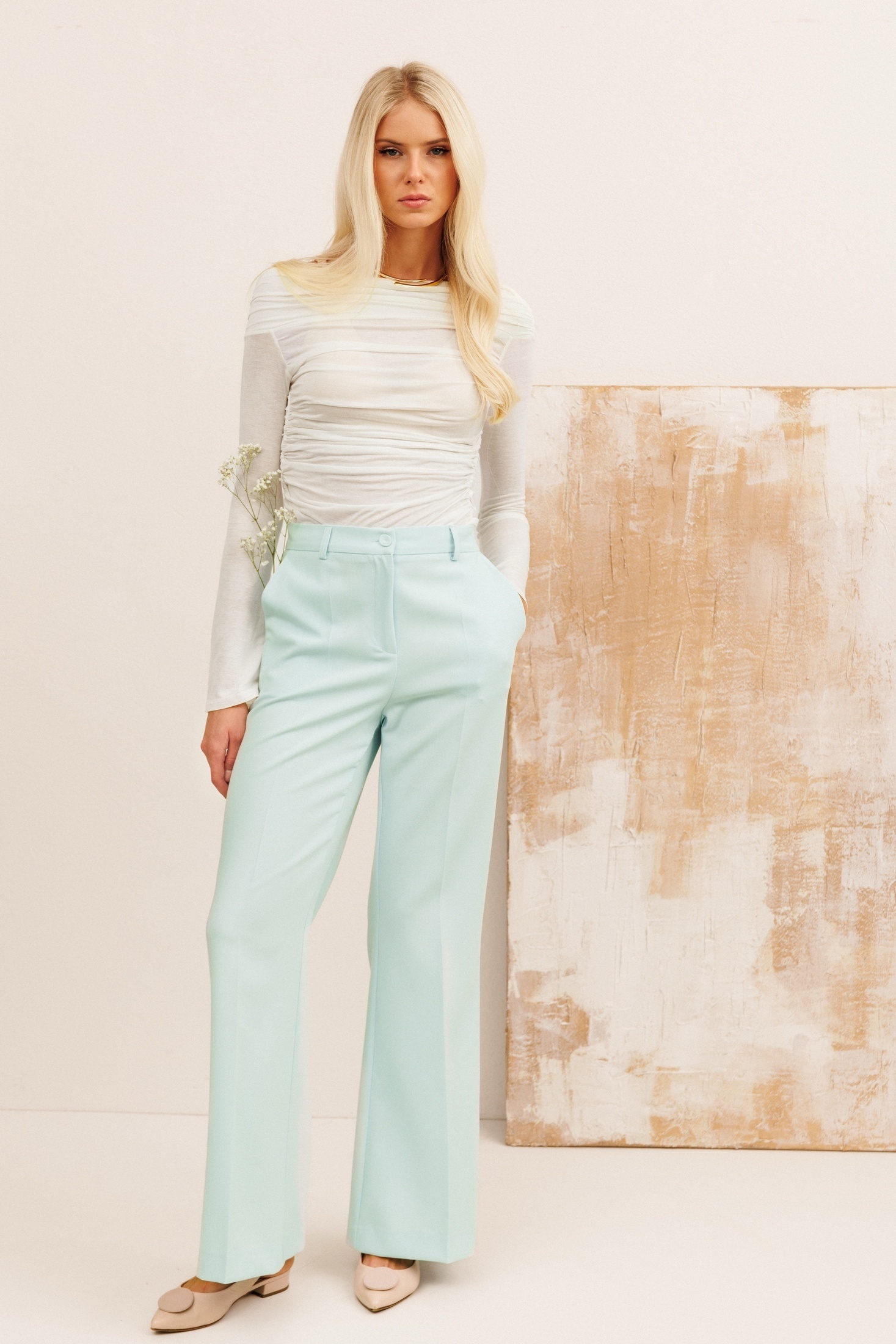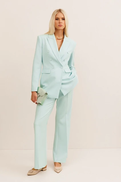 Костюм брючный 30014 KOKOdea - стильная находка для деловых женщин. Коллекция бренда KOKOdea предлагает вам изысканный комплект из жакета и брюк, идеально подходящий для офиса и важных встреч. Жакет полуприлегающего силуэта с двубортной застёжкой на пуговицы и боковыми карманами с клапанами подчеркнёт ваш утончённый стиль. Брюки слегка клёш силуэта с застёжкой на молнию и пуговицу имеют эластичный пояс на спинке для дополнительного комфорта. Выполненные из мягкой и прочной ткани с добавлением вискозы, они дарят удобство в носке. Нежный пастельный цвет костюма прекрасно освежает общий образ, делая его идеальным выбором для весны и лета.