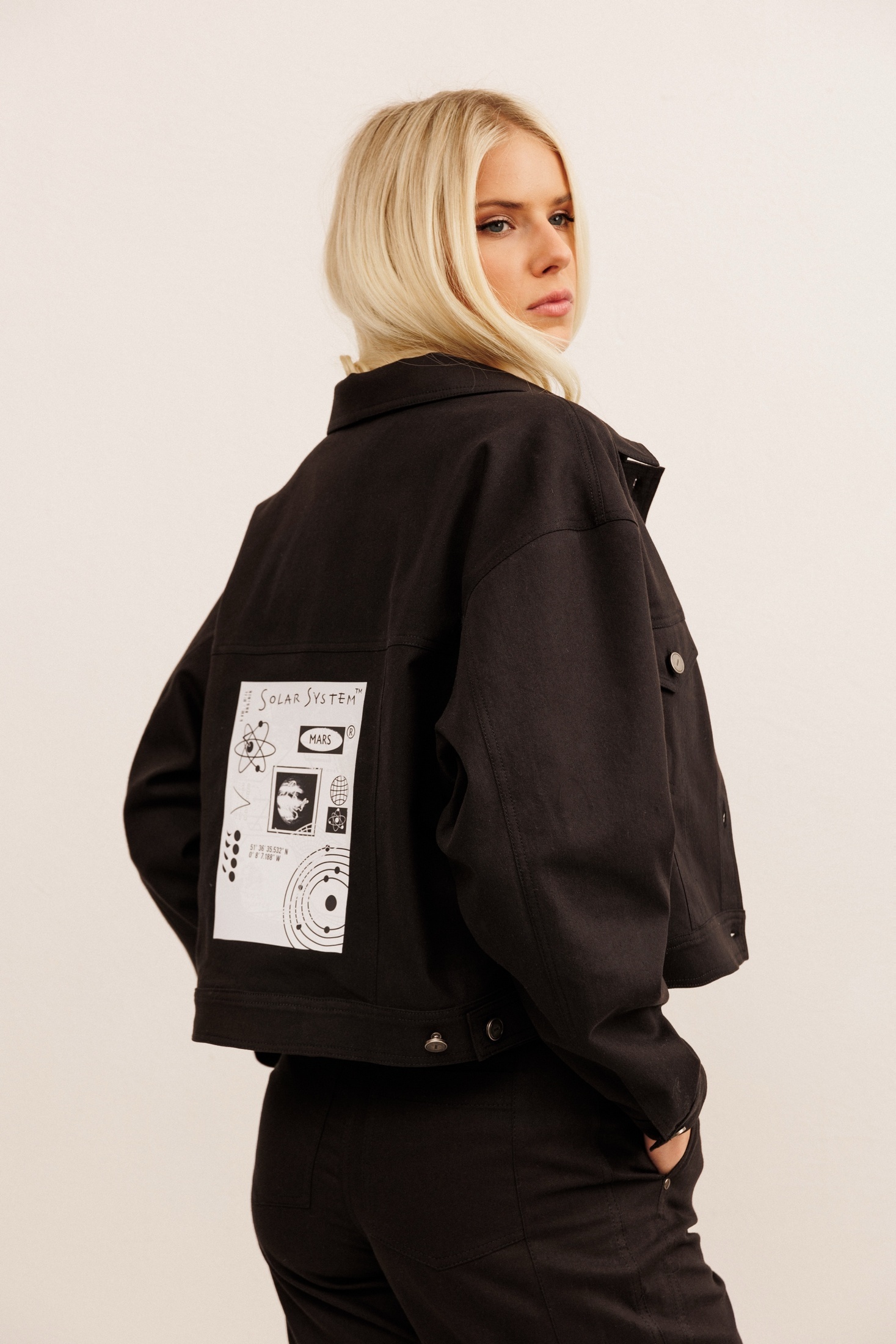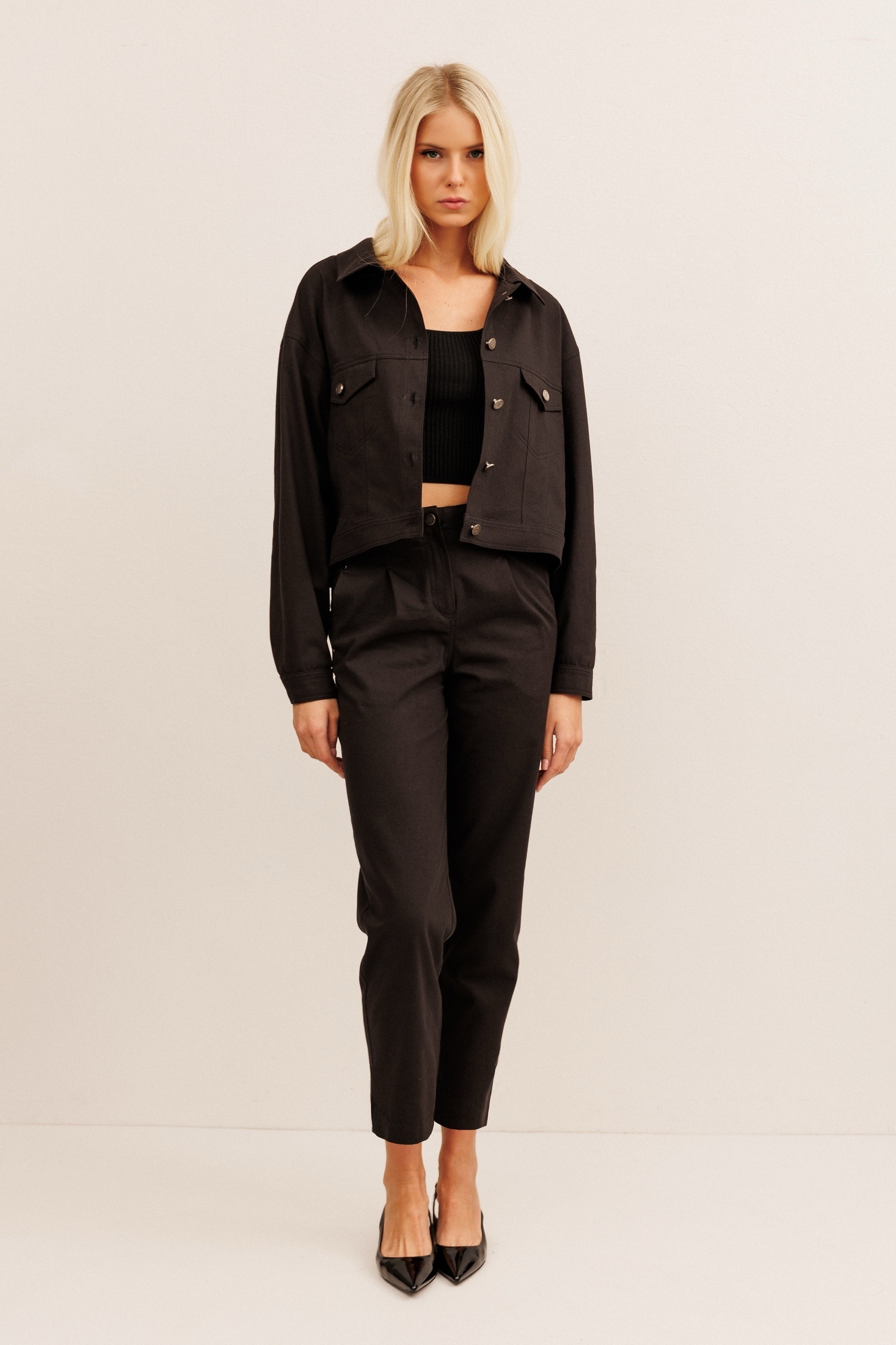 Костюм брючный 30016 чёрный KOKOdea - идеальный выбор для стильного гардероба. Коллекция бренда KOKOdea предлагает современный брючный костюм из джинсовой хлопковой ткани. Жакет свободного силуэта украшен дизайнерской графической печатью по спинке и кокеткой. Спущенная линия плеча и рельефные швы создают элегантный фасон. Брюки имеют слегка расширенный вверху и зауженный к низу силуэт с застёжкой на молнию и пуговицу. Благодаря резинке на спинке, костюм обеспечивает комфорт в носке. Длинные рукава с манжетами и карманы в боковых швах дополняют функциональность образа. Чёрный цвет костюма делает его универсальным выбором для любого сезона и повода.