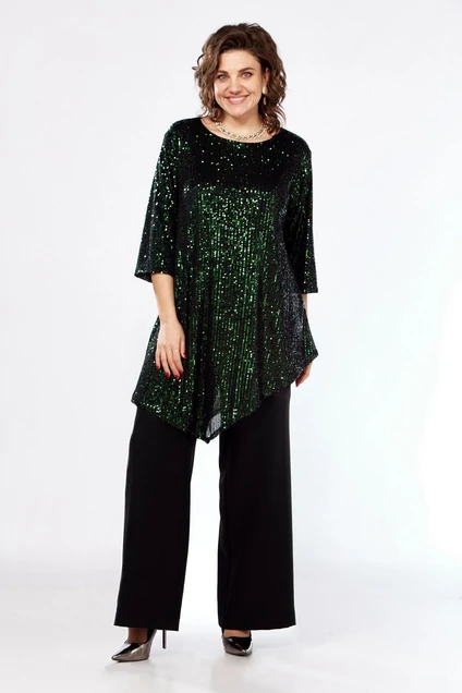*Костюм брючный 1546 темный изумруд + черный LADIS LINE