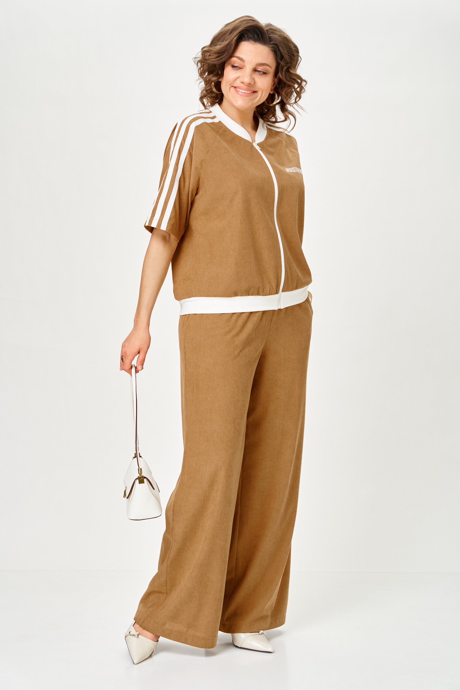 Костюм брючный 26236 карамель Ladysecret станет стильным дополнением вашего гардероба. Коллекция бренда Ladysecret воплощает молодежный дух в сочетании с комфортом. Изготовленный из легкого вельвета с добавлением вискозы, он обеспечивает мягкость и легкость движений. Свободный крой бомбера с коротким рукавом и молнией, а также брюки с эластичной лентой делают костюм идеальным для повседневного ношения в осенние дни. Практичные карманы в боковых швах добавляют функциональность. Свежий карамельный цвет и светлая отделка обеспечивают современный и модный вид. Этот костюм подходит как для городской прогулки, так и для офисных встреч, подчеркивая ваш стиль и уверенность.